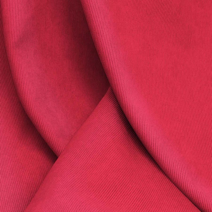 La tela base de este tejido es una Pana Aterciopelada - Dublin compuesta por 85% poliéster, 12% poliamida y 3% elastano, con un gramaje de 280gr/m2, ancho de 150 cm y con cuidados específicos para su conservación. El color liso impreso en esta tela es un rojo rusty, con un CMYK de 7 93 66 1, que se combina perfectamente con tonalidades de verde y azul oscuro. La tela está impresa con el color liso a una sola cara por impresión digital textil, lo que permite obtener una alta precisión en los detalles y una gran resolución en la imagen.