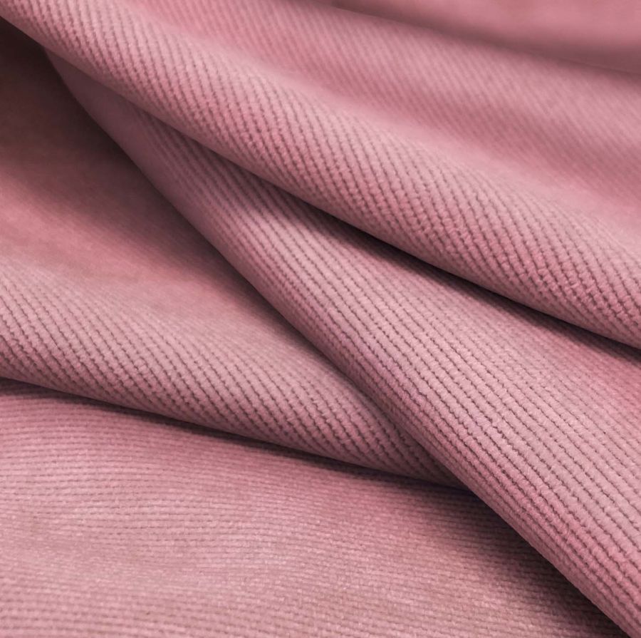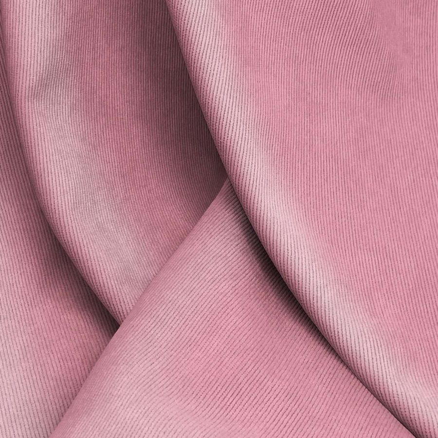 La tela base de la Pana Aterciopelada - Dublin está compuesta por un 85% de poliéster, un 12% de poliamida y un 3% de elastano, lo que le da una textura suave y un brillo visual característico. Su color liso impreso es un rojo rubor con un CMYK de 13 57 28 2 y se combina particularmente bien con tonos neutros como grises y negros, así como con tonos dorados y plateados para ofrecer una mayor variedad de opciones de diseño. Este tejido está impreso con el color liso a una sola cara por impresión digital textil, lo que significa que no es un tejido tintado, sino impreso por una sola cara.