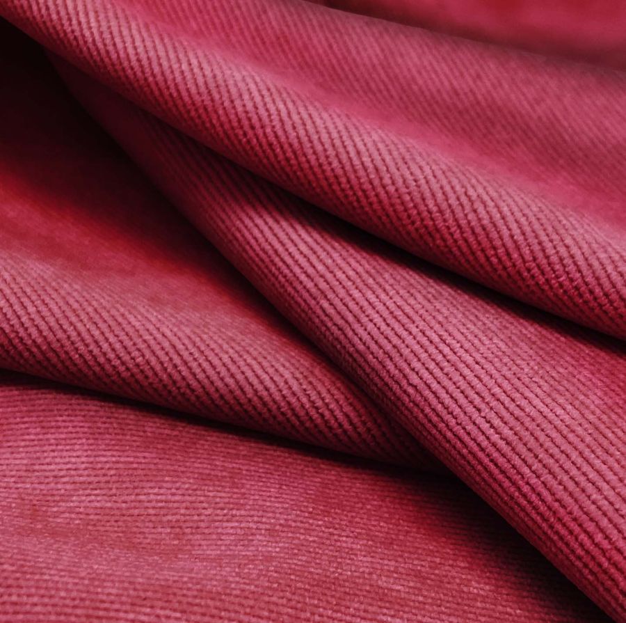 Cabe destacar que esta tela está impresa con el color liso a una sola cara mediante impresión digital textil, y no es un tejido tintado. En cuanto a sus características, la Pana Aterciopelada - Dublin se caracteriza por tener una textura suave al tacto y un brillo visual resaltante. Por otro lado, el color Ruby big dip impreso sobre esta tela le aporta un tono intenso y llamativo que atrae la atención.