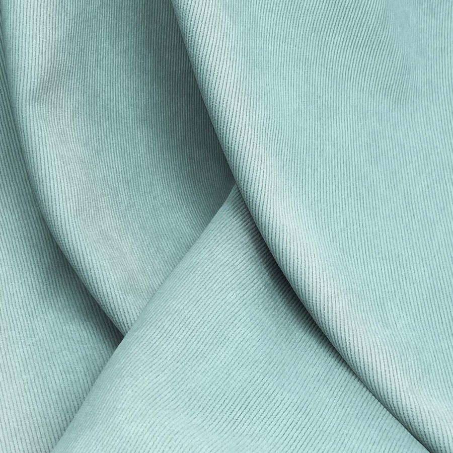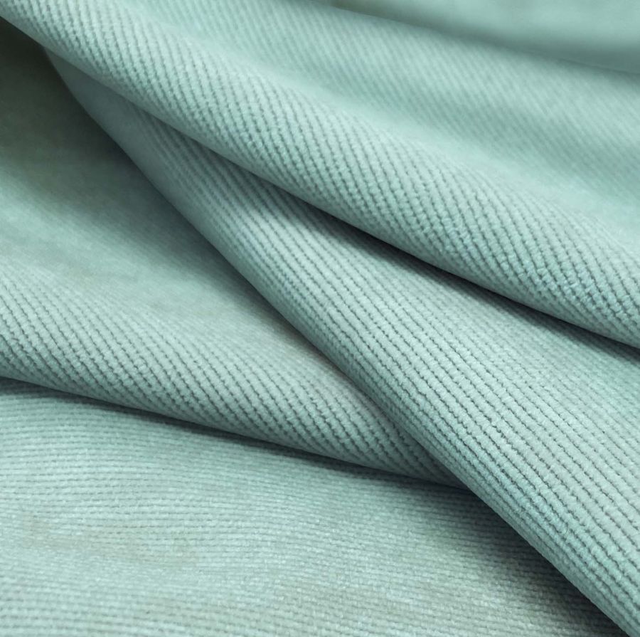 La tela base de este tejido es Pana Aterciopelada - Dublin, compuesta por 85% de poliéster, 12% de poliamida y 3% de elastano, con un gramaje de 280 gr/m2 y un ancho de 150 cm. El color impreso en esta tela es un tono verde aguamarina claro, que se crea mediante la impresión digital textil con una tinta cyan del 42%, una tinta yellow del 22% y sin presencia de magenta ni negro. La combinación de estas tintas produce un tono suave y fresco, que se complementa bien con colores tierra y tonos pastel.