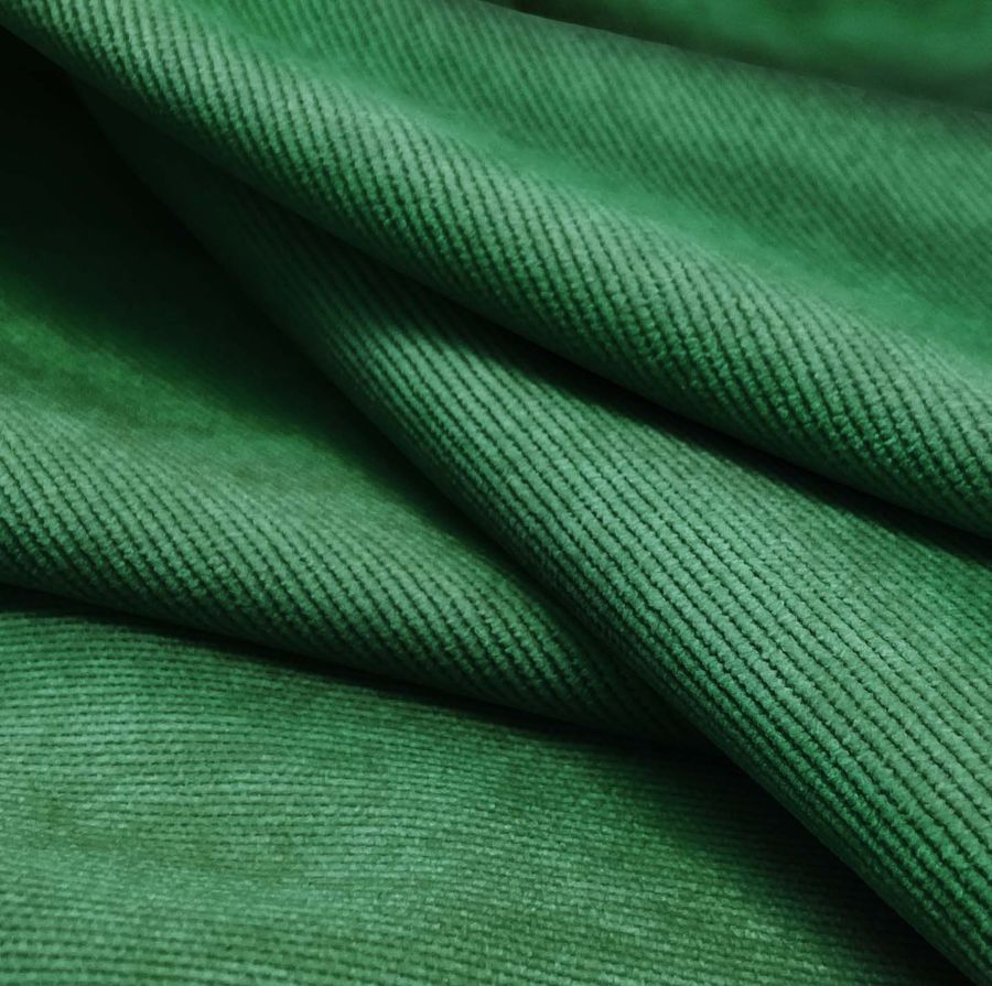 La tela base es Pana Aterciopelada - Dublin, con una composición de 85% poliéster, 12% poliamida y 3% elastano. El color liso impreso es verde menta, con un CMYK de 86 36 82 32. Este color evoca la frescura de la naturaleza y la serenidad del mar, lo cual lo convierte en una excelente elección para decoraciones de interiores y moda primaveral. Combina especialmente bien con tonos pasteles como el rosa pálido y el amarillo suave.