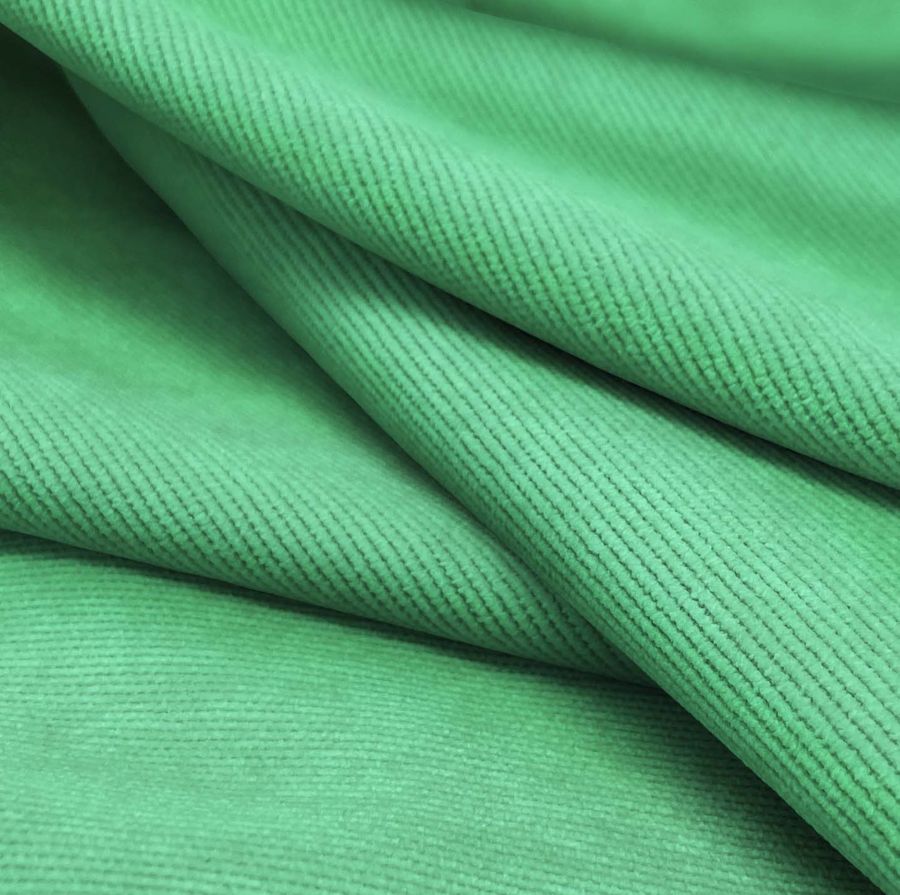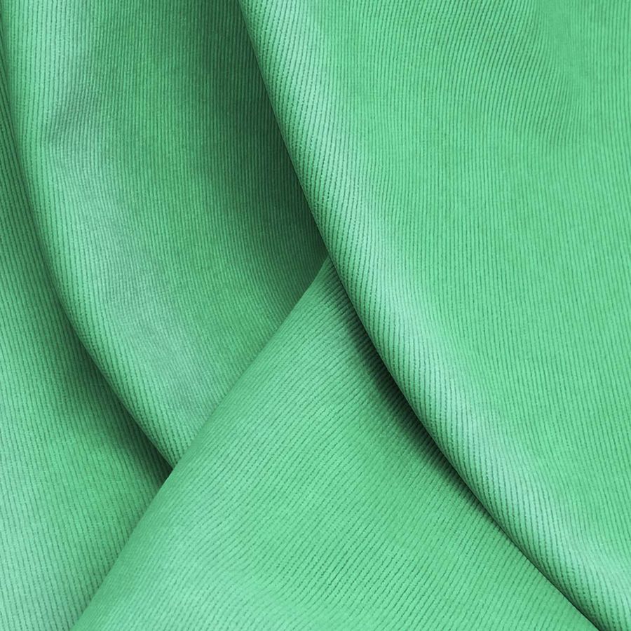 Esta es la tela base de Pana Aterciopelada - Dublin, una pana compuesta por 85% poliéster, 12% poliamida y 3% elastano, con un gramaje de 280 gr/m2 y un ancho de 150 cm. Su color liso impreso es Verde Esmeralda Claro, que se representa con un CMYK de 61 0 61 0. Este color se caracteriza por ser un verde vibrante y saturado, que tiene una gran fuerza visual y simboliza la naturaleza en su máximo esplendor. Es un color que se asocia con la renovación, la frescura y la armonía.
