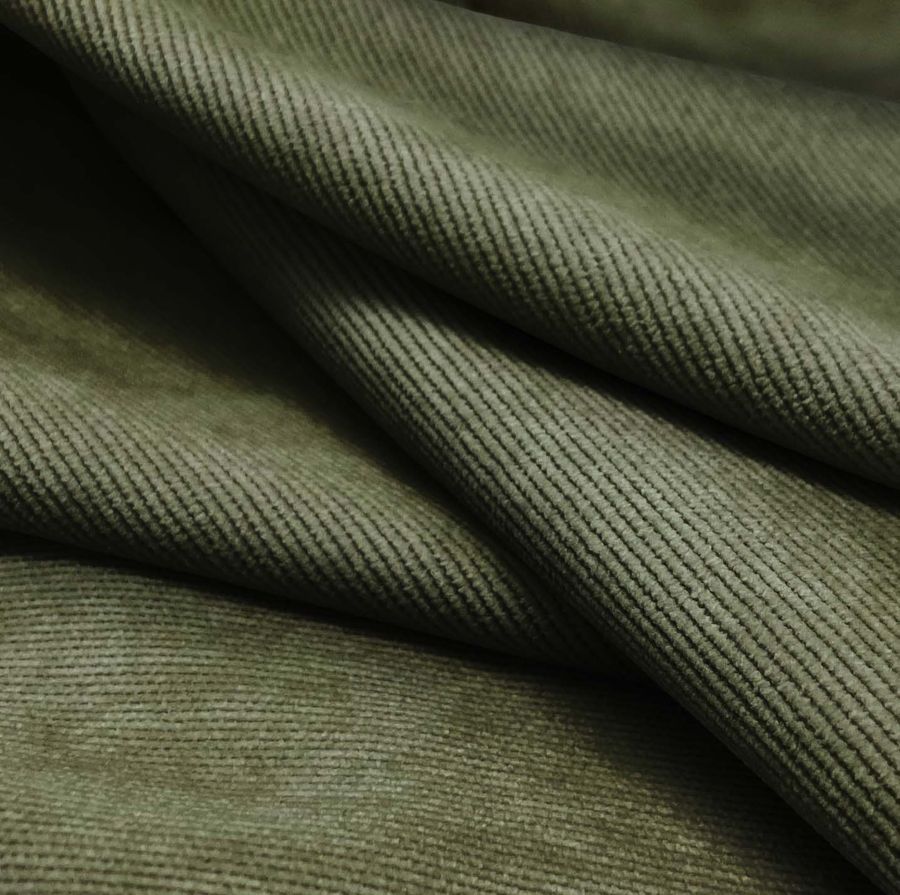 La tela base de esta descripción es la Pana Aterciopelada - Dublin, con una composición de 85% POLIÉSTER, 12% POLIAMIDA y 3% ELASTANO. El gramaje es de 280 gr/m2 y el ancho de la tela de 150 cm. El color liso impreso es Verde Oliva, con un CMYK de 66 50 73 55. Este color es suave y profundo, evocando la naturaleza y la tranquilidad. Combina muy bien con tonos neutros como gris y beige, así como con colores cálidos como bronce y marrón oscuro. Es importante resaltar que esta tela está impresa con el color liso a una sola cara por impresión digital textil, lo que significa que el diseño se aplica mediante tintas pigmentadas directamente sobre la superficie de la tela en una sola pasada, logrando una mayor precisión y nitidez en la impresión.