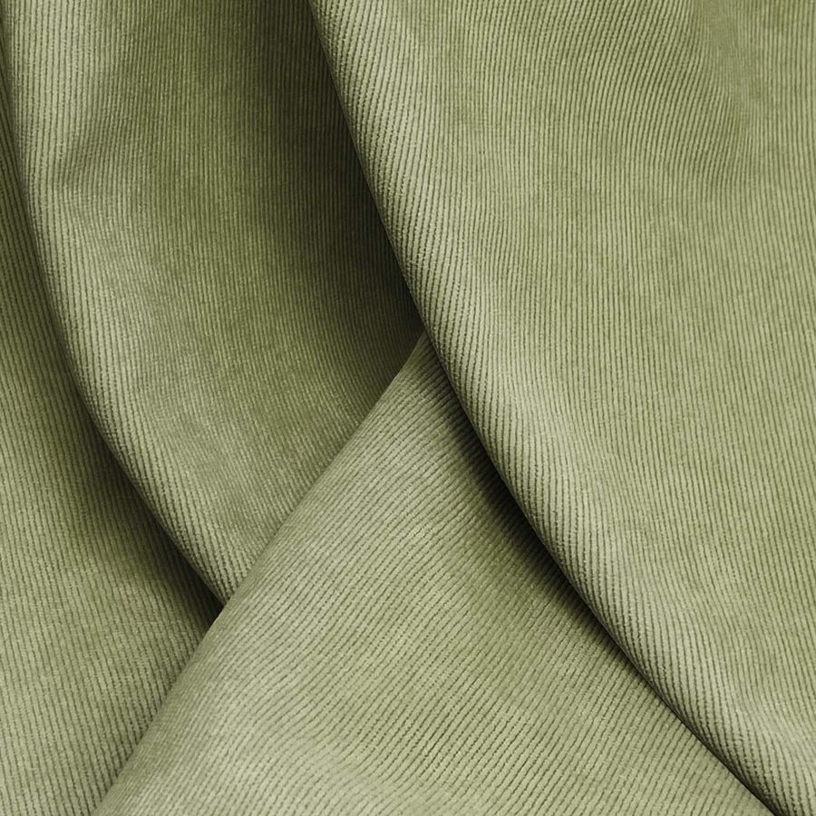 La tela base, Pana Aterciopelada - Dublin, de composición 85% poliéster, 12% poliamida y 3% elastano, es un tejido suave y visualmente brillante. Su impresión en color liso de tono verde oliva (CMYK 49 33 67 17) aporta un matiz sofisticado y natural. Combinado con tonos neutros como el beige o colores vibrantes como el naranja y el rojo, crea una atmósfera acogedora y elegante. La impresión se realiza con tecnología de sublimación en una sola cara, manteniendo la suavidad y textura de la tela base.