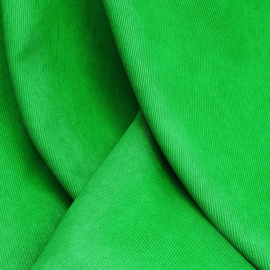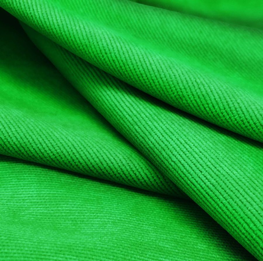La tela base de este producto es la Pana Aterciopelada - Dublin, compuesta por 85% POLIÉSTER, 12% POLIAMIDA y 3% ELASTANO, con un gramaje de 280 gr/m2 y un ancho de 150 cm. El color impreso es un verde brillante, con una combinación de tintas Cyan y Yellow al 75% y al 100% respectivamente, y sin tintas Magenta ni Black. Este color se combina perfectamente con tonos tierra y con tonos grises.