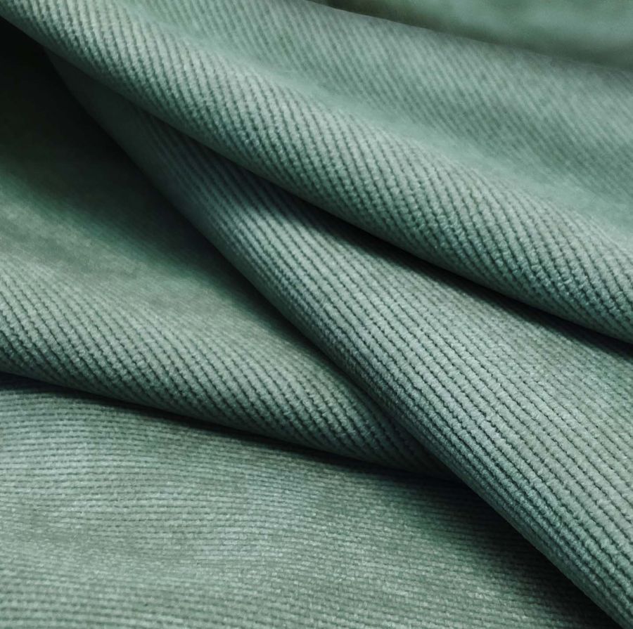 La tela base Pana Aterciopelada - Dublin tiene una composición de 85% poliéster, 12% poliamida y 3% elastano, con un gramaje de 280 gr/m2 y un ancho de 150 cm. El color liso impreso en la tela es un elegante verde ceniza, que se consigue a través de una combinación de tinta cyan, magenta, yellow y black en un CMYK de 64 34 46 18. Este color emana una sensación de serenidad y sofisticación, y se combina a la perfección con tonos terrosos, beiges y azules.