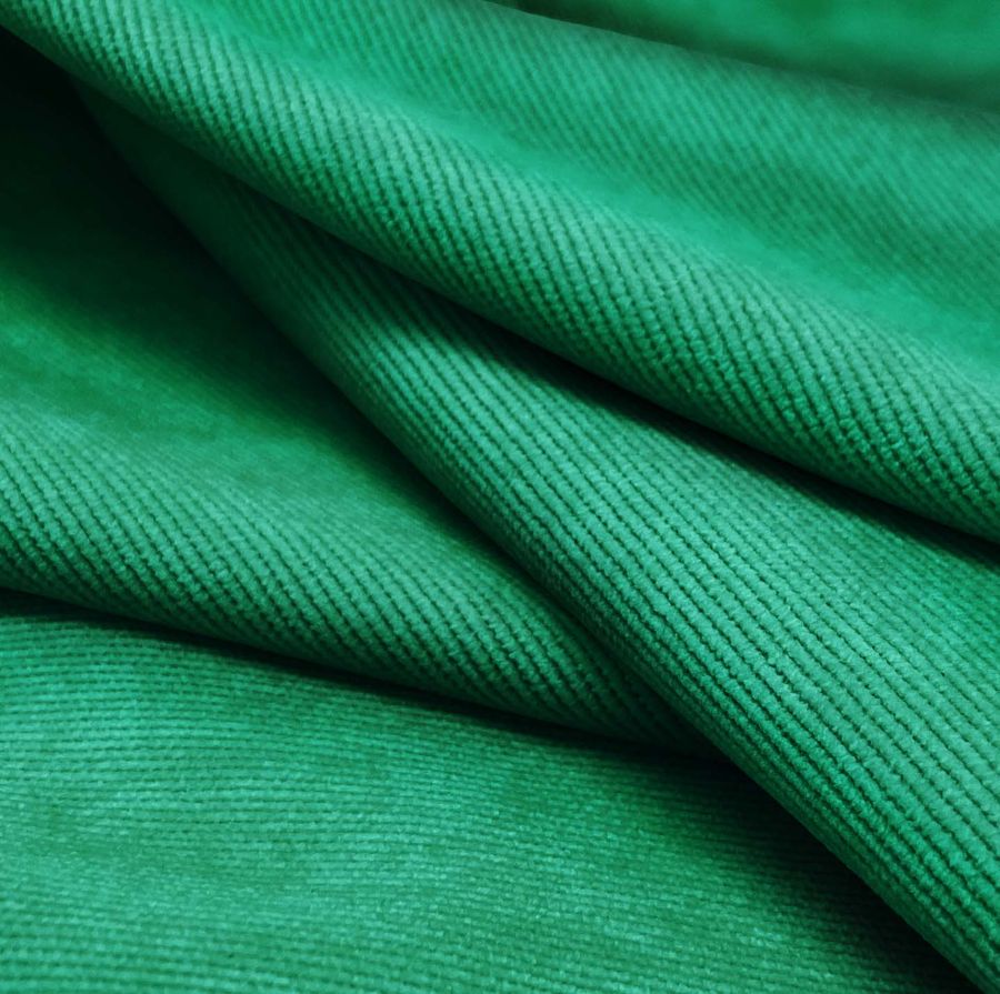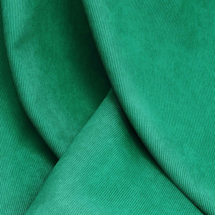 La tela base es la Pana Aterciopelada - Dublin, compuesta por un 85% de poliéster, un 12% de poliamida y un 3% de elastano, con un gramaje de 280 gr/m2 y un ancho de 150 cm. El color liso impreso es Verde-Cobalto, con una combinación CMYK de 85 23 74 7. Este color se caracteriza por transmitir una sensación de frescura y vitalidad. Combina muy bien con tonos neutros y otros colores suaves, como el blanco o el rosa pastel.