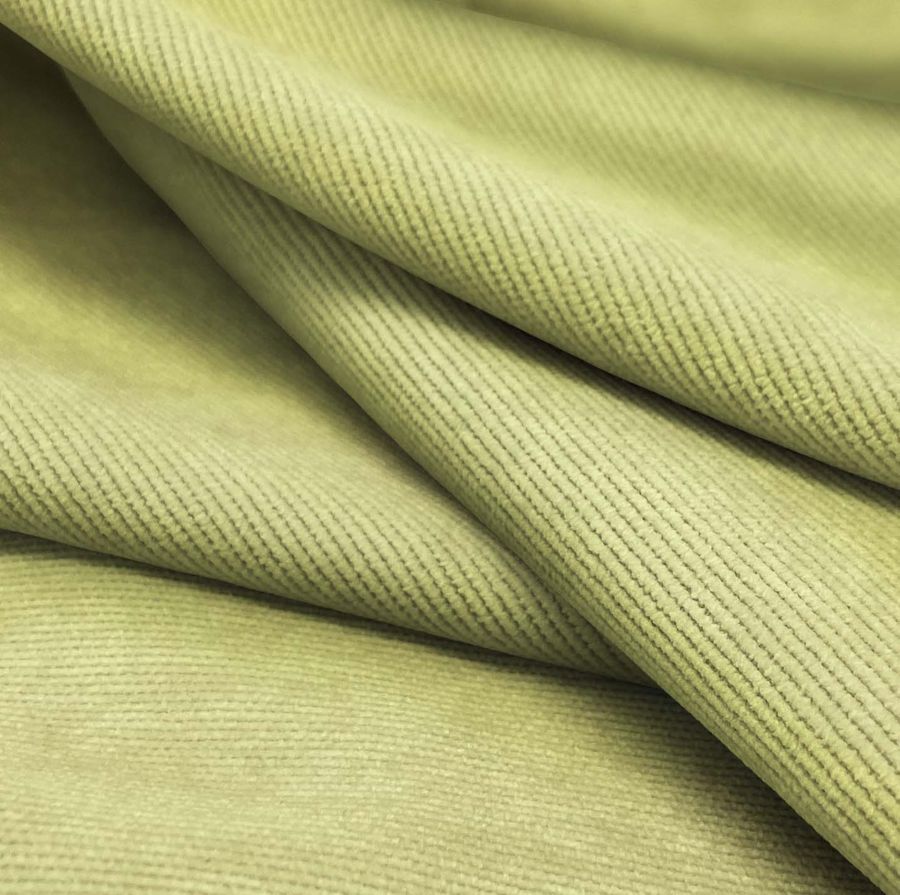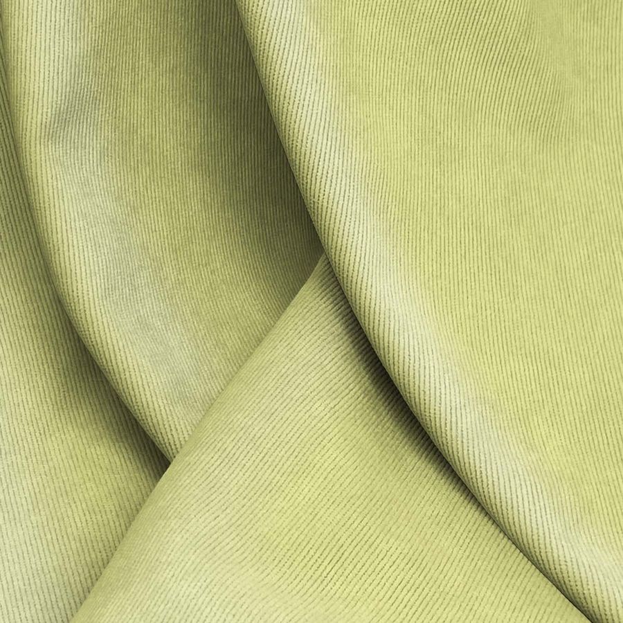 La Pana Aterciopelada - Dublin es una tela de pana con una composición de 85% de poliéster, 12% de poliamida y un 3% de elastano, con un gramaje de 280 gr/m2 y un ancho de 150 cm. Su color liso impreso es un hermoso Verde Uva Espina, con un CMYK de 23, 7, 62, 0, que lo describe como un tono profundo y suntuoso. Este color secundario es versátil, pues combina perfectamente con una amplia variedad de colores, como beige, marfil, gris y rosa claro.
