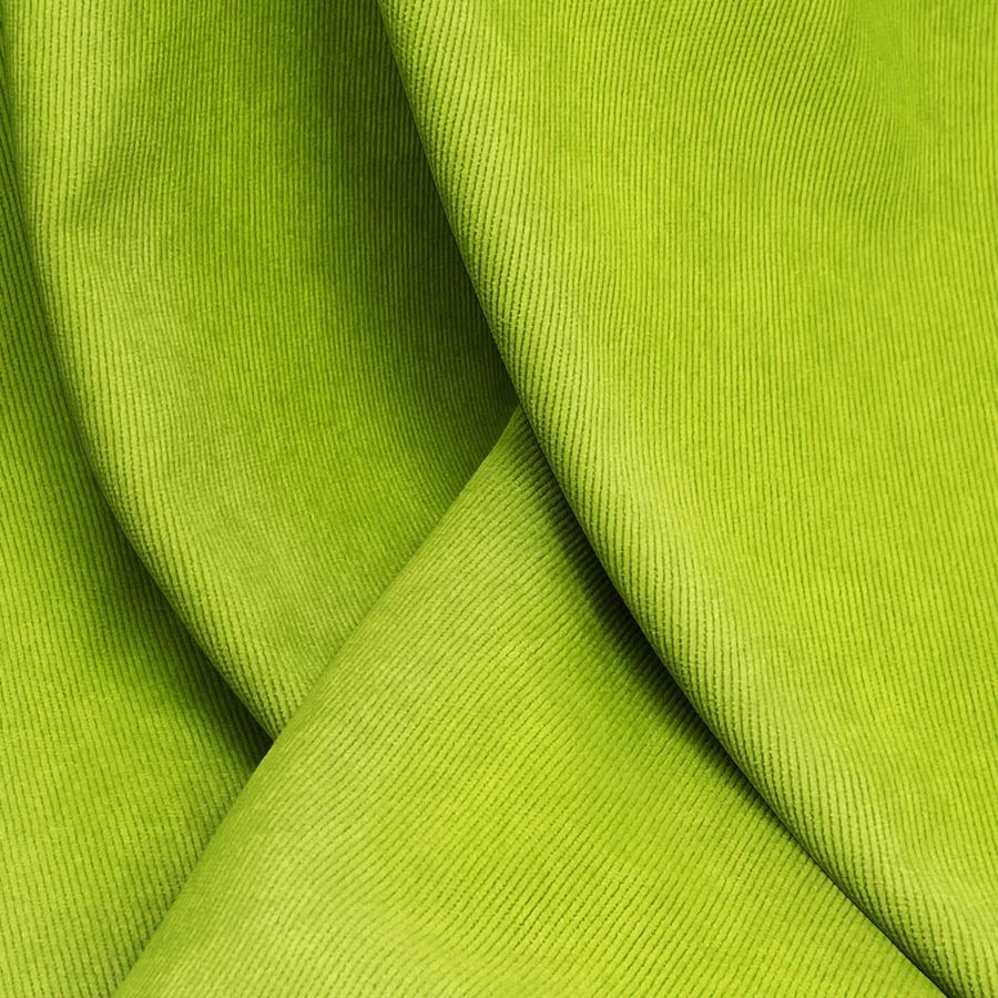 La tela base es la Pana Aterciopelada - Dublin, compuesta principalmente por poliéster y poliamida, con un 3% de elastano. El color liso impreso es Verde Iguana y su contenido en CMYK es de 48 3 100 0. Este color combina muy bien con tonos tierra y marrones oscuros, generando una atmósfera natural y sofisticada. El tejido está impreso con este color a una sola cara por impresión digital textil, lo que le proporciona una impresión de alta calidad y resolución.
