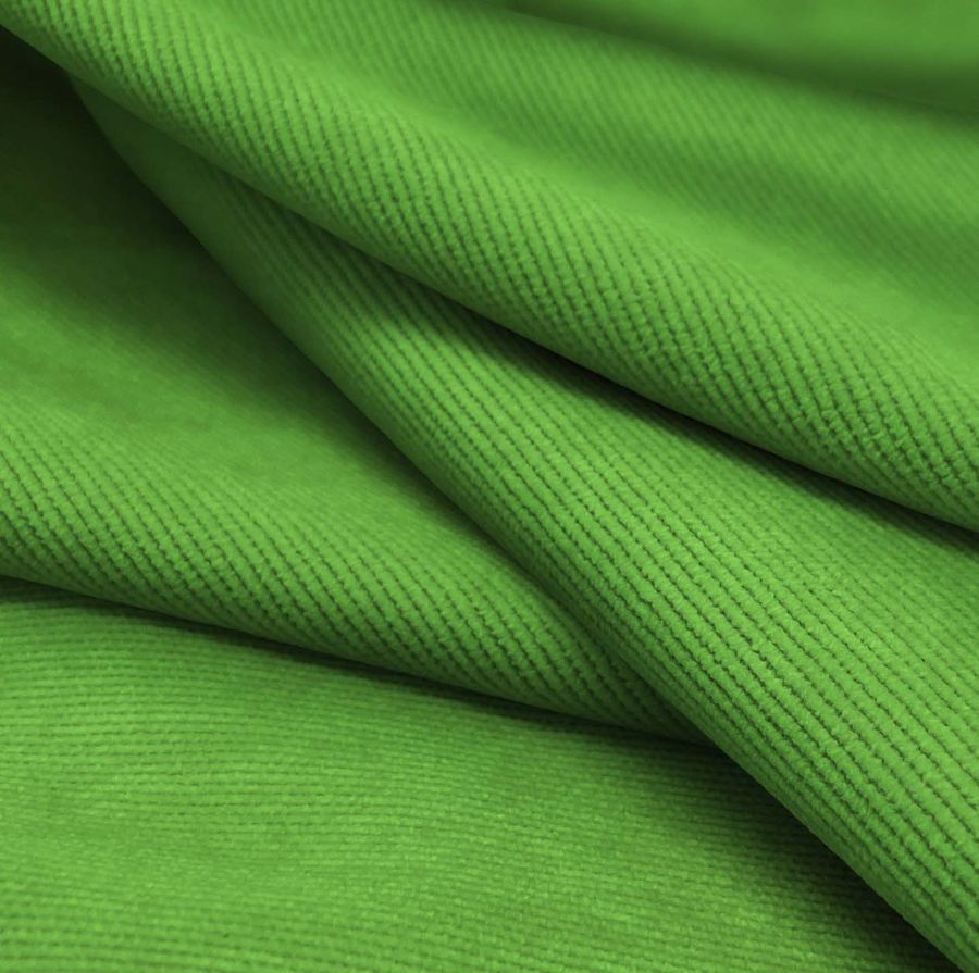 La tela base es la Pana Aterciopelada - Dublin, compuesta por 85% POLIÉSTER, 12% POLIAMIDA y 3% ELASTANO, con un gramaje de 280 gr/m2 y un ancho de 150 cm. El color liso impreso es Verde Irlandés con el CMYK 71 18 98 3, lo que hace que tenga una tonalidad brillante y vibrante. Este color se combina especialmente bien con tonalidades marrones y doradas. Es importante destacar que este tejido está impreso con el color liso en una sola cara mediante impresión digital textil.