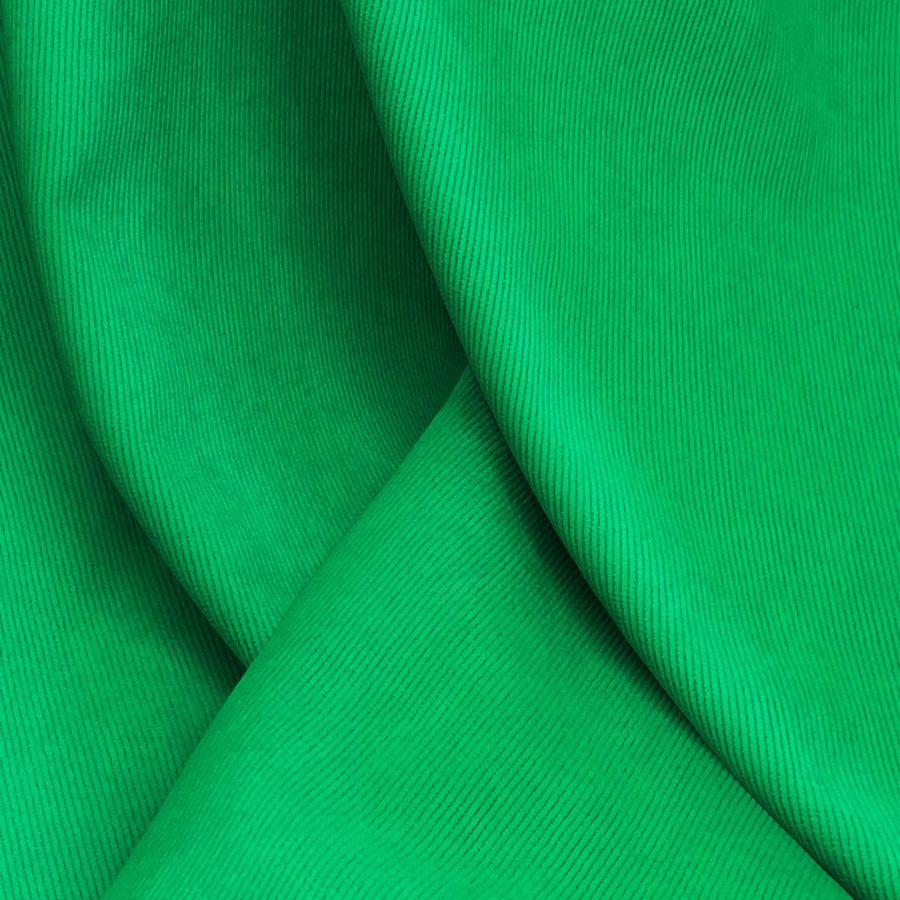 La tela base de este tejido es la Pana Aterciopelada - Dublin, con una composición de 85% poliéster, 12% poliamida y 3% elastano. Su gramaje es de 280 gr/m2 y su ancho de tela es de 150 cm. El color liso impreso es un verde pigmento con un CMYK de 80 2 87 0, lo que se traduce en un color fuerte y vibrante con una base verdosa. Este color combina especialmente bien con tonos neutros como el beige o el gris, así como con algún otro acento de color más atrevido como el rosa fucsia o el naranja. Es importante destacar que este tejido está impreso a una sola cara por impresión digital textil, lo que significa que no es un tejido tintado sino impreso por una sola cara.