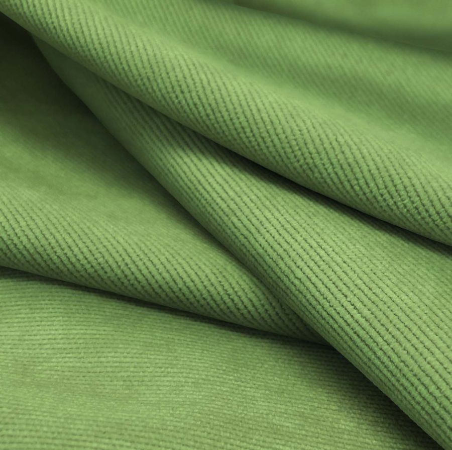 La tela base, pana aterciopelada Dublin, tiene una composición de 85% poliéster, 12% poliamida y 3% elastano, con un gramaje de 280 gr/m2 y un ancho de 150 cm. En cuanto al color liso impreso, este es verde prado con un CMYK de 61 22 77 5. Este tono refleja la frescura de la naturaleza, con un matiz suave y agradable a la vista. Combinado con otros colores, como el blanco o tonos tierra, crea una sensación de harmonía natural y elegancia contemporánea. Es importante destacar que la tela está impresa con el color liso a una sola cara por impresión digital textil, lo que permite una gran precisión en la impresión.