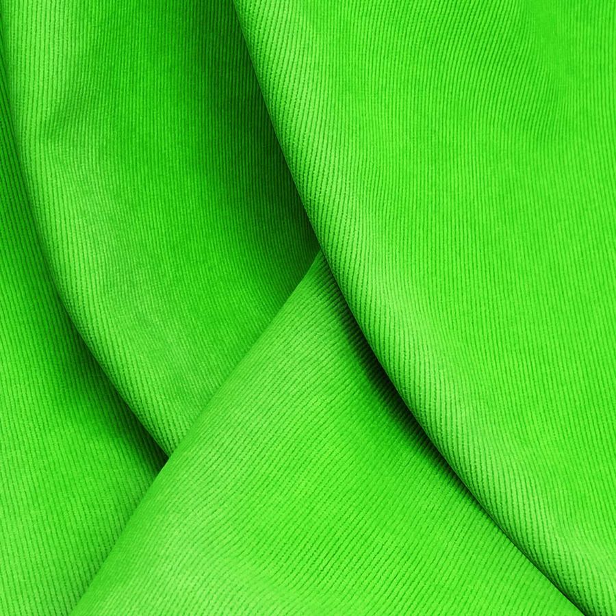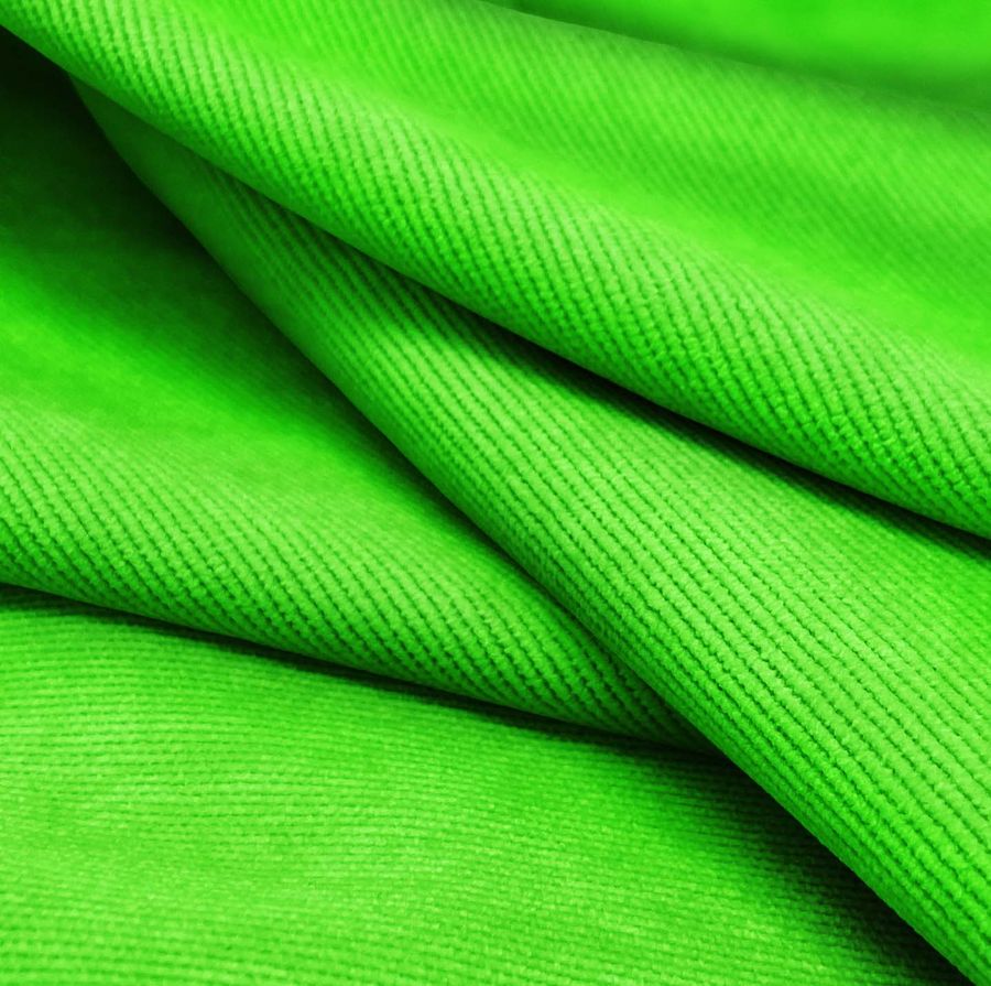 La tela base de esta descripción es la Pana Aterciopelada - Dublin, de composición 85% poliéster, 12% poliamida y 3% elastano, con un gramaje de 280 gr/m2 y un ancho de tela de 150 cm. El color liso impreso es un verde veneno, con una tinta cyan del 63%, magenta del 0%, yellow del 100% y black del 0%, lo que da un valor de CMYK de 63 0 100 0. Este color es vibrante y llamativo, evocando una sensación de energía y vitalidad. Además, combina bien con tonos neutros como el gris o el beige.