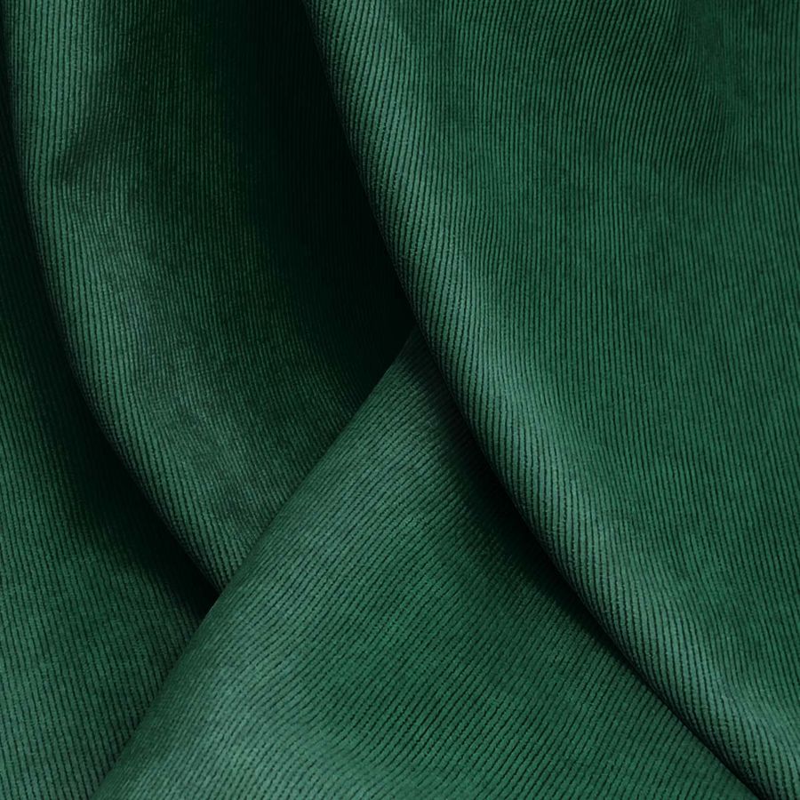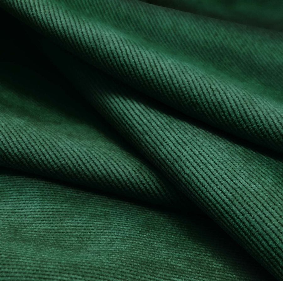 La tela base de este tejido es la Pana Aterciopelada - Dublin, compuesta por 85% Poliéster, 12% Poliamida y 3% Elastano, con un gramaje de 280 gr/m2 y un ancho de 150 cm. El color impreso es Verde Oscuro, con un CMYK de 93 50 83 67. Este color se describe como profundo y sofisticado, que transmite una sensación de estabilidad y confianza. Se combina bien con colores neutros como el blanco, negro o gris, así como con tonos más vivos como el amarillo o el rojo.