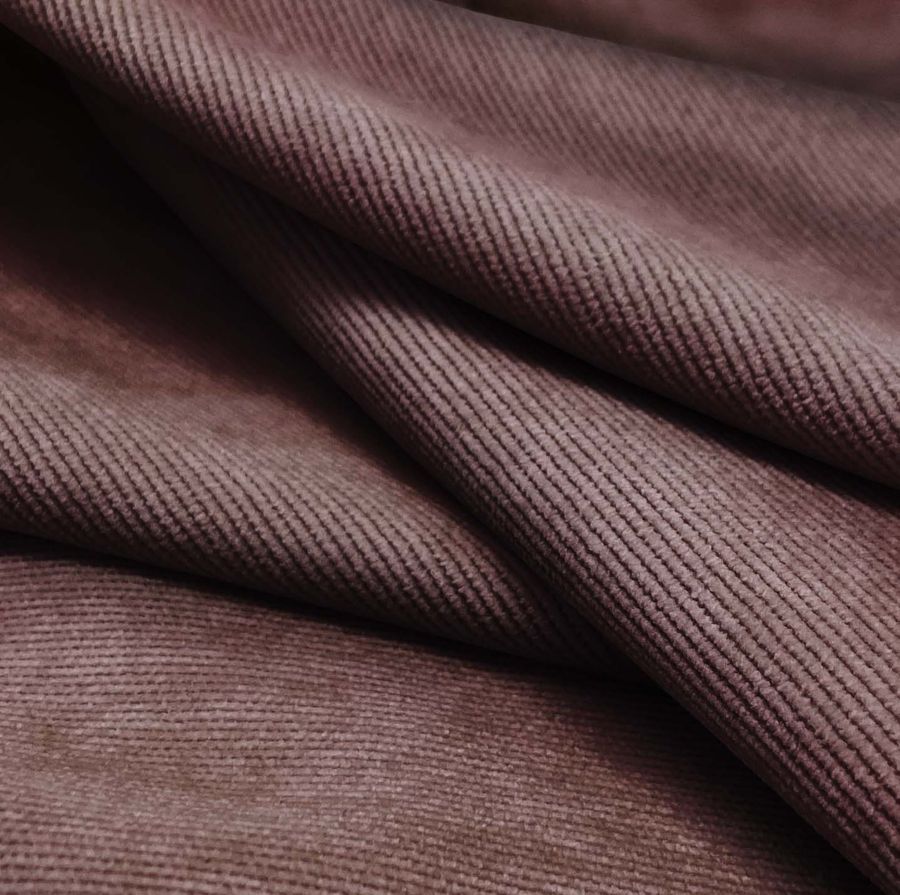 La tela base de este tejido es la Pana Aterciopelada - Dublin, compuesta por un 85% de poliéster, 12% de poliamida y un 3% de elastano. Su gramaje es de 280 gr/m2 y su ancho de 150 cm. El color liso impreso es un rojo intenso, con una combinación de tintas cyan, magenta, yellow y black que le proporcionan una intensidad y una profundidad única. Esta tonalidad de rojo se asemeja al color granate. El color secundario de la tela es un rojo grana, que combina perfectamente con tonos marrones, verdes oscuros y otros tonos neutros como blanco, negro o beige.