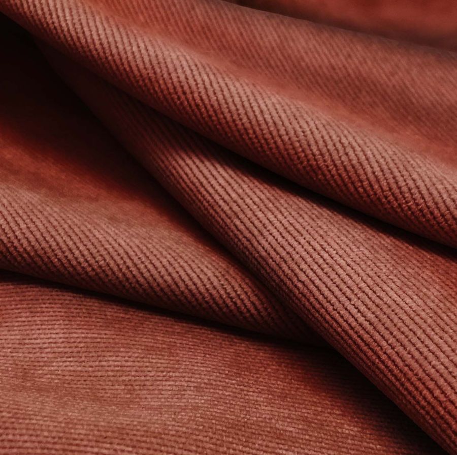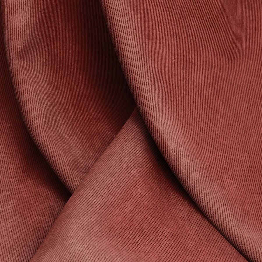 La tela base es Pana Aterciopelada - Dublin, con una composición de 85% poliéster, 12% poliamida y 3% elastano. El color liso impreso es Rojo Inglés con un CMYK de 33 84 78 44. Este color secundario destaca por ser intenso y vibrante, y se complementa especialmente bien con tonos oscuros, como el negro, el gris o el azul marino. La tela está impresa con el color liso a una sola cara, mediante impresión digital textil.