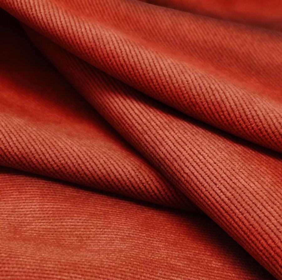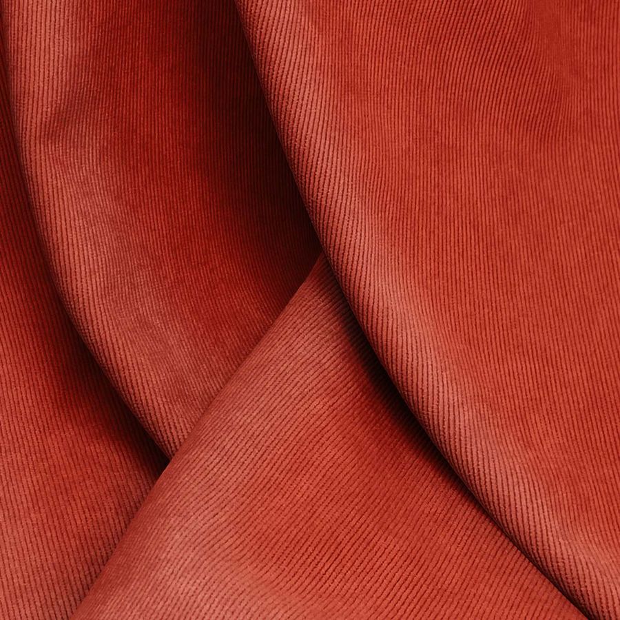 La tela base de este tejido es la Pana Aterciopelada - Dublin, compuesta mayoritariamente por poliéster, poliamida y elastano. Su gramaje es de 280 gr/m2 y su ancho alcanza los 150 cm. El color liso impreso es un rojo tomate, indicado por el CMYK 24 96 100 21. Este color secundario se caracteriza por ser vivo e intenso, con un toque cálido y brillante, ideal para la temporada de invierno. Combina perfectamente con colores como los tonos beige, anaranjados y dorados, creando una armonía visual y estética muy atractiva.