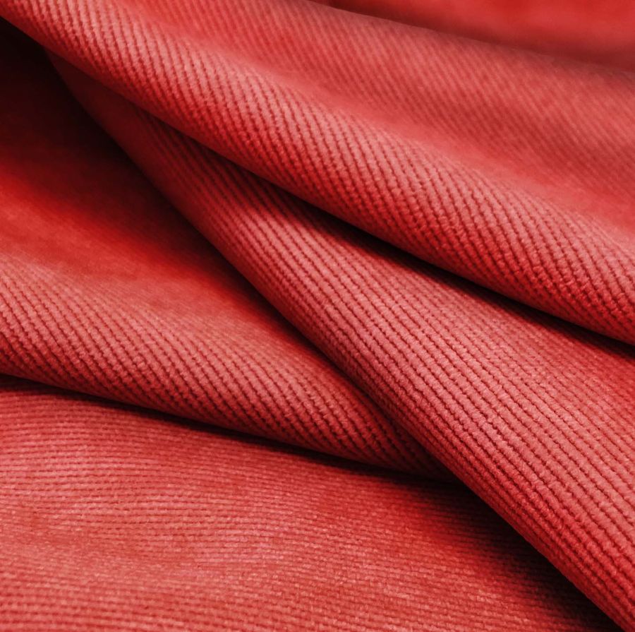 La tela base, Pana Aterciopelada - Dublin, posee una composición de 85% poliéster, 12% poliamida y 3% elastano con un gramaje de 280 gr/m2 y un ancho de 150 cm. Su color liso impreso es rojo ultrarrojo con un CMYK de 14 91 79 4. El rojo simboliza pasión, fuerza y energía. Es un color atractivo y vibrante que llama la atención. Complementa perfectamente con tonos neutros como el gris, blanco y negro, así como con el verde oscuro y azul oscuro. La tela está impresa con el color liso a una sola cara por impresión digital textil.