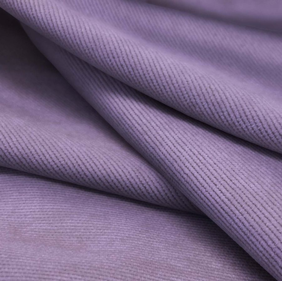 La tela base Pana Aterciopelada - Dublin de composición 85% POLIÉSTER, 12% POLIAMIDA y 3% ELASTANO, posee un gramaje de 280 gr/m2 y un ancho de 150 cm. Su color liso impreso es Azul Campánula, reflejando un contenido de CMYK de 57 59 16 2. Este color secundario tiene una connotación simbólica de frescura, tranquilidad y armonía. Además, combina en particular con tonos grises, blancos y verdes, generando un ambiente sereno y relajado. Es importante destacar que la tela está impresa con el color liso a una sola cara por impresión digital textil, lo que significa que no es un tejido tintado sino impreso por una sola cara, conservando la suavidad y textura característica de la pana aterciopelada.