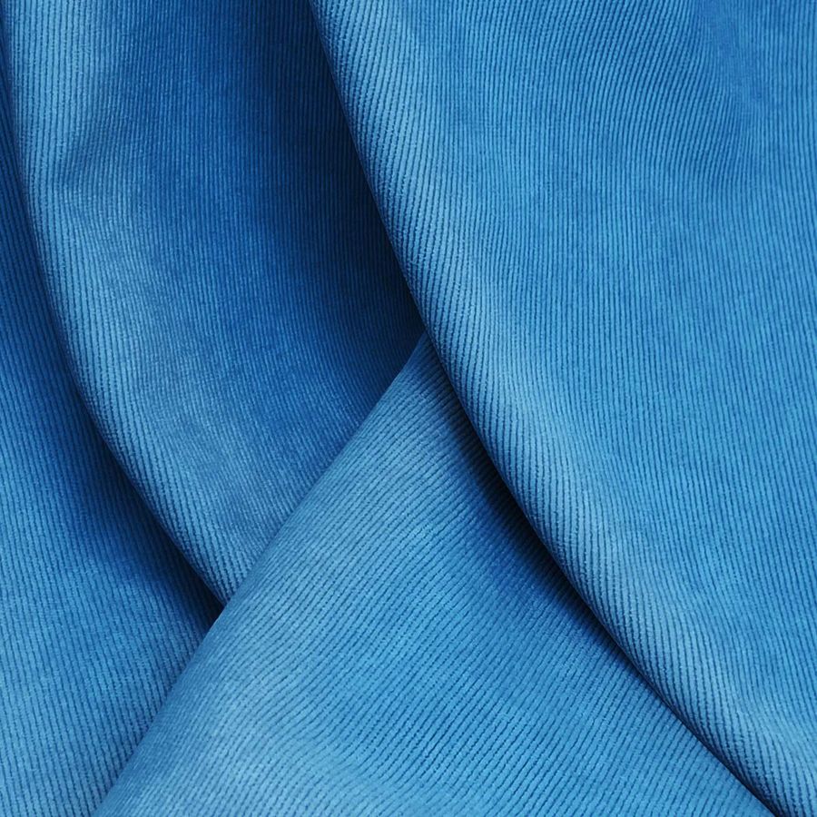 La tela base es la Pana Aterciopelada - Dublin, compuesta por 85% de poliéster, 12% de poliamida y 3% de elastano con un gramaje de 280 gr/m2 y un ancho de 150 cm. El color liso impreso es Azul celeste en un tono suave, con una tinta Cyan del 84, una tinta Magenta del 49, una tinta Yellow del 4 y una tinta Black del 0, con un CMYK del 84 49 4 0. Este color primario es ideal para combinar con tonos cálidos como marrones o beiges, o con colores más fuertes como el rojo o naranja para un look vibrante.