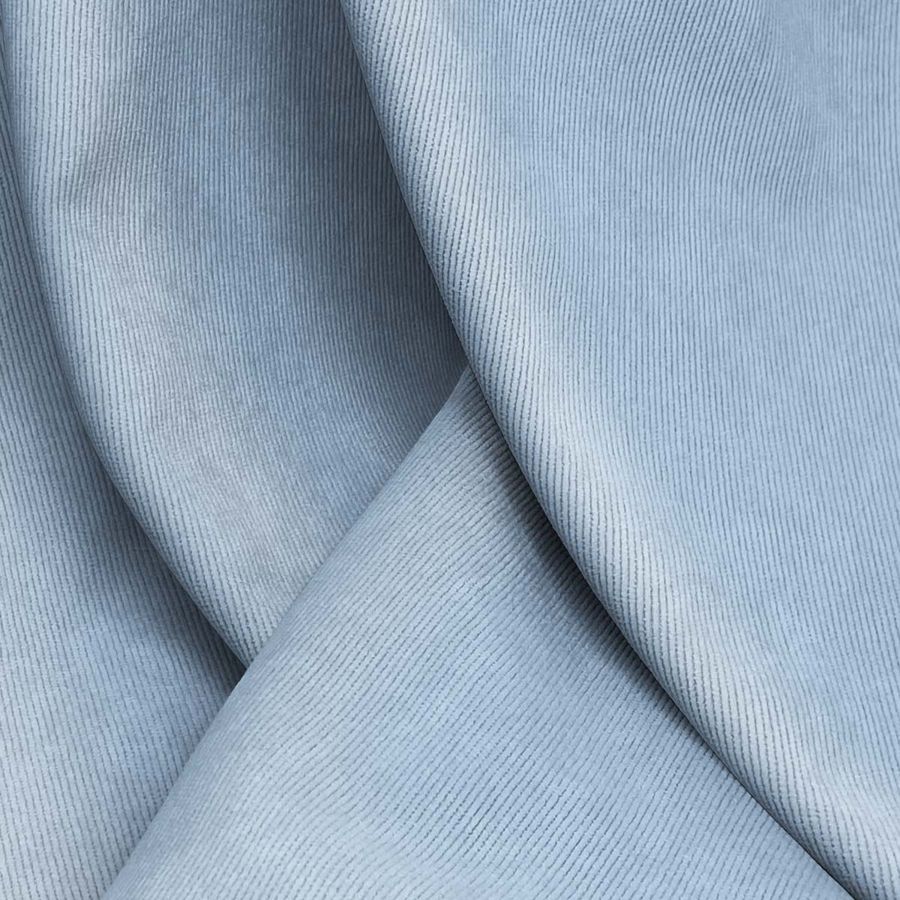 La tela base es la Pana Aterciopelada - Dublin, compuesta por un 85% de poliéster, 12% de poliamida y un 3% de elastano. Su gramaje es de 280 gr/m2 y su ancho de 150cm. El color liso impreso en la tela es un hermoso Azul celestial con un CMYK de 46 22 10 0, lo que implica que es un tono suave y delicado. Este color secundario combina muy bien con tonos claros como el crema, el beige y el blanco, así como con tonos más intensos como el rojo y el fucsia.