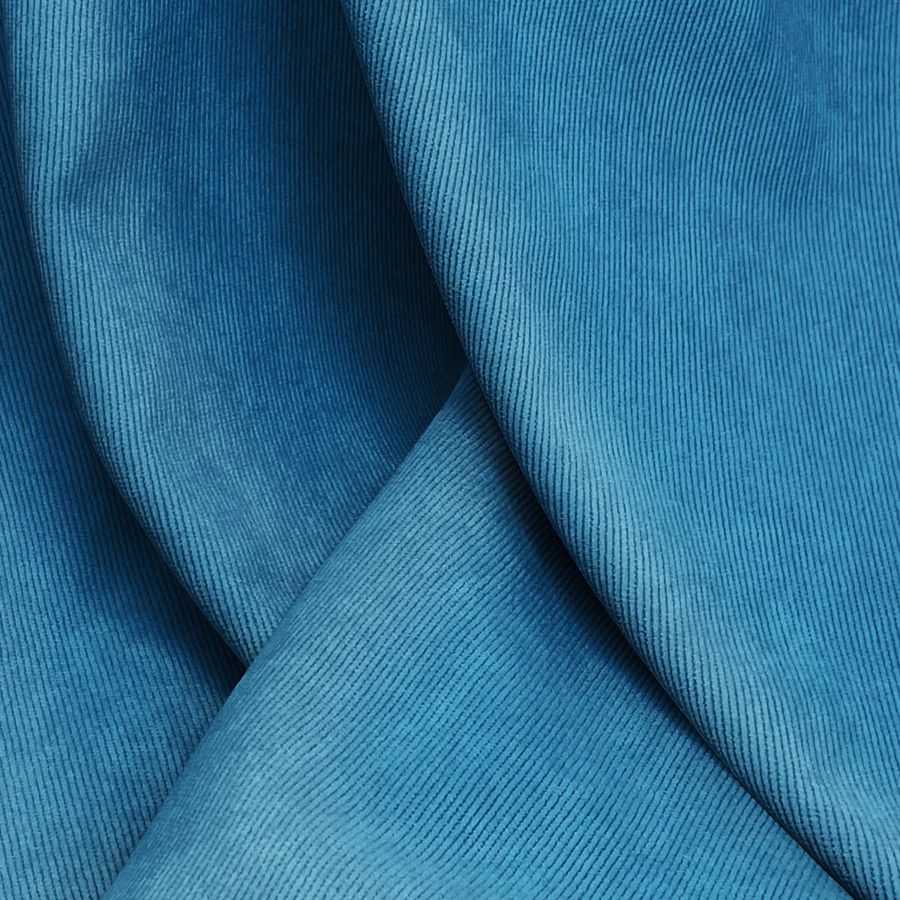 La tela base de Pana Aterciopelada - Dublin es de composición 85% poliéster, 12% poliamida y 3% elastano, con un gramaje de 280 gr/m2 y un ancho de 150 cm. El color liso impreso en la tela es Azul Cosmos con un CMYK de 87 50 25 9, lo que le proporciona una tonalidad intensa y profunda. Este color secundario es una mezcla de azul oscuro y violeta, que transmite sensaciones de paciencia, estabilidad y confianza. Combinado con tonalidades como el gris, el blanco, el negro y el rosa claro, crea contraste y elegancia.