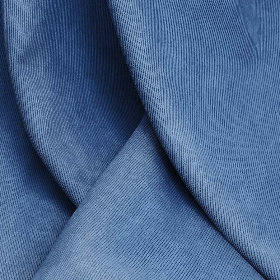 La tela base es la Pana Aterciopelada - Dublin, compuesta por 85% de poliéster, 12% de poliamida y 3% de elastano, con un gramaje de 280 gr/m2 y ancho de 150 cm. El color liso impreso es el Azul, Cerámica de Delft, con un CMYK de 83 60 23 7. Este color se caracteriza por ser un azul vibrante y profundo, que combina especialmente con tonos crema, beige o amarillos claros y oscuros. Se imprime el color liso en una sola cara por impresión digital textil.