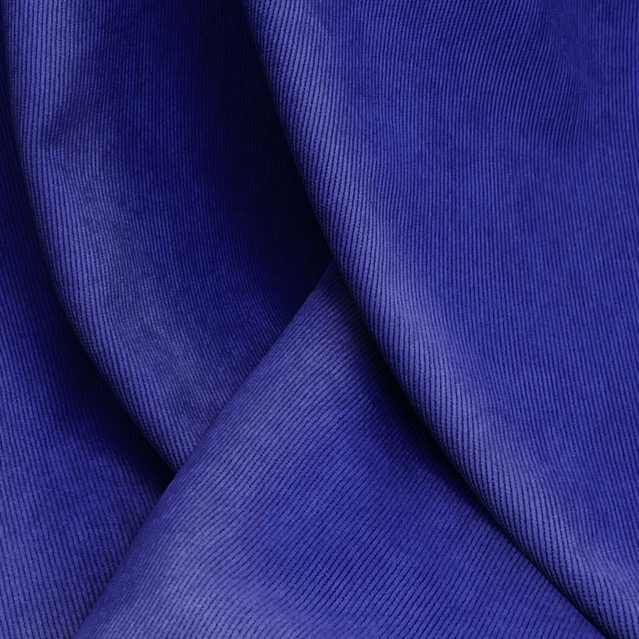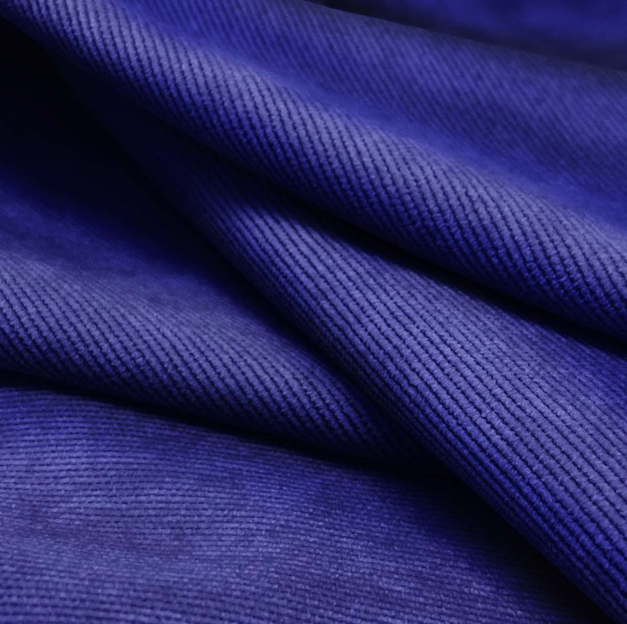 La tela base es una Pana Aterciopelada - Dublin, compuesta por un 85% de poliéster, un 12% de poliamida y un 3% de elastano, con un gramaje de 280 gr/m2 y una anchura de 150 cm. El color liso impreso es Azul Medianoche, con un CMYK de 100 95 29 14, siendo ricas en tonos cian y magenta, con un toque de amarillo y negro. El color secundario es un azul profundo y oscuro con un brillo visual intenso, combinando perfectamente con tonos neutros, grises, blancos y negros.