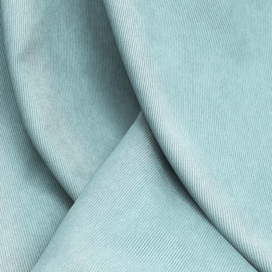 La tela base es la Pana Aterciopelada - Dublin, compuesta por 85% de poliéster, 12% de poliamida y 3% de elastano, con un gramaje de 280 gr/m2 y un ancho de 150 cm. Tiene una textura suave y visual brillante, lo que confiere a la tela una apariencia elegante y sofisticada. El color liso impreso es de un tono azul Nomeolvides, que se obtiene con una mezcla de 40% de tinta cian, 0% de tinta magenta, 17% de tinta yellow y 0% de tinta black. Este color representa la tranquilidad, la armonía y la eternidad, y es ideal para ropa de invierno y decoración de hogares.