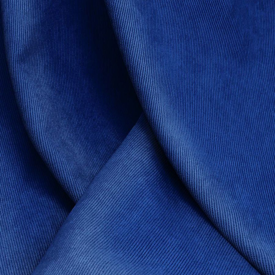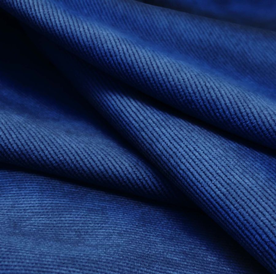 La tela base de Pana Aterciopelada - Dublin tiene una combinación compuesta por 85% POLIÉSTER, 12% POLIAMIDA y 3% ELASTANO, un gramaje de 280 gr/m2 y un ancho de 150 cm. El color impreso liso del tejido es azul real, con un CMYK de 100, 89, 35, 23, siendo el resultado un tono intenso y profundo. Este color combina a la perfección con tonos claros, como el blanco y el beige, así como con tonos oscuros, como el negro y el gris. El tejido está impreso con el color liso a una sola cara por impresión digital textil, lo que lo convierte en un tejido de alta calidad.