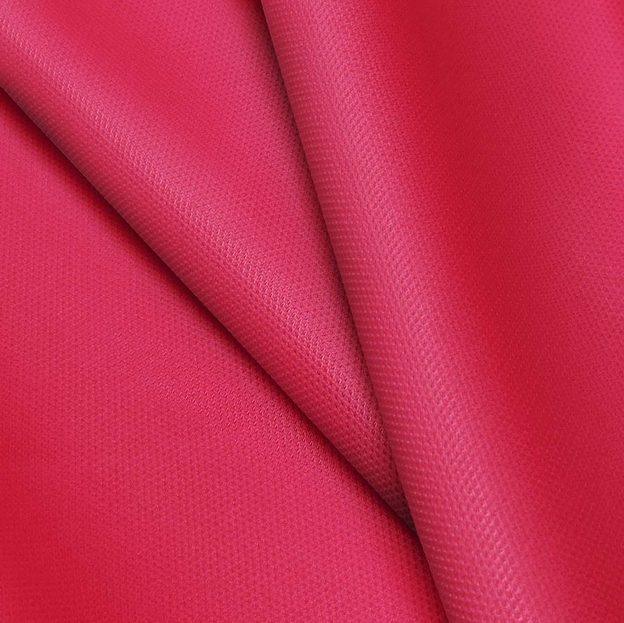 La tela base es Piqué para Polo - Durban, compuesta 100% de poliéster con un gramaje de 180 gr/m2 y un ancho de 150 cm. El color liso impreso es Rojo Vino Tinto con una combinación de tintas Cyan al 12%, Magenta al 100%, Yellow al 73% y Black al 3% (CMYK: 12 100 73 3). El color secundario es intenso y profundo, representa la pasión y el glamour, se combina perfectamente con tonos neutros como el blanco y el negro, así como con tonalidades pastel como el rosa claro o el beige.