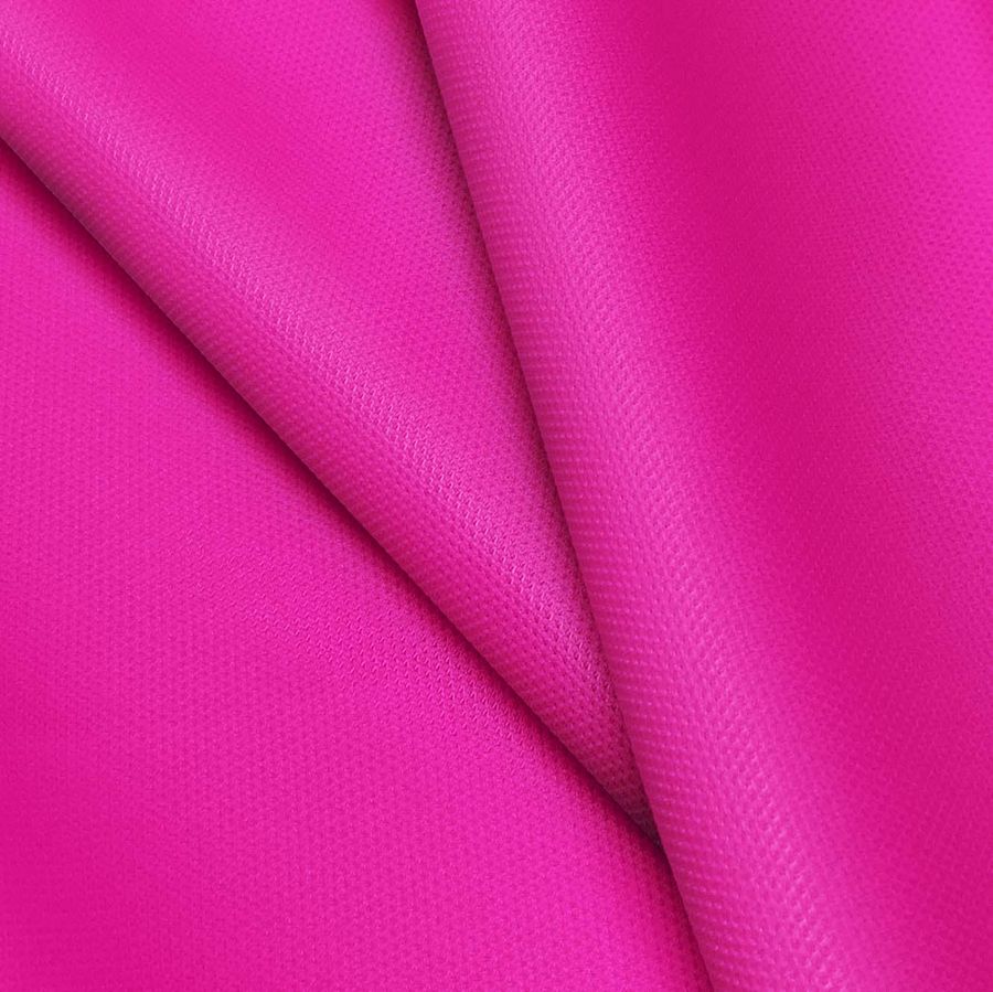 La tela base de este tejido es el Piqué para Polo - Durban, compuesto por 100% poliéster, con un gramaje de 180 gr/m2 y un ancho de 150 cm. El color liso impreso es rosa magenta estándar, con una tinta de cian en 0%, magenta en 94%, amarillo en 0% y negro en 0%, lo que lo convierte en un color vibrante y atractivo. Este color secundario es asociado con la energía, la pasión y la creatividad, y combina especialmente bien con tonos claros de gris y verde oliva.