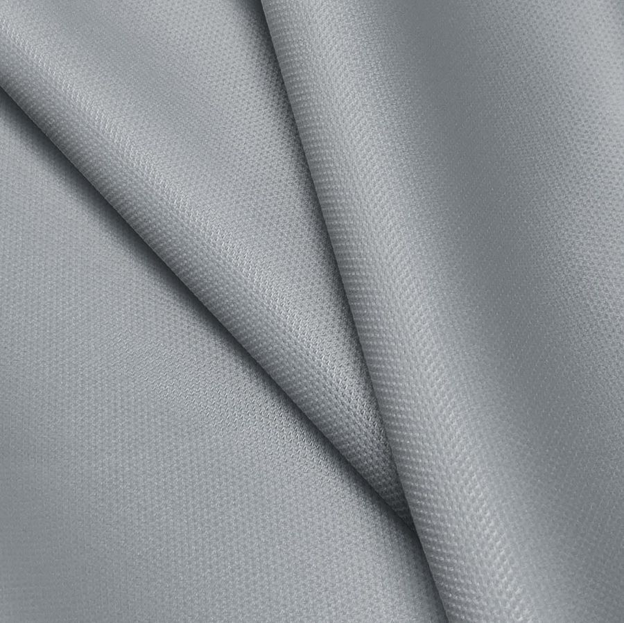 La tela base, Piqué para Polo - Durban, es un tejido de piqué compuesto al 100% de poliéster, con un gramaje de 180 gr/m2 y un ancho de 150 cm. El color liso impreso es un Gris Cadete Maerz-Paul, con una composición CMYK de 51 37 35 16. Este tono representa una atmósfera elegante y sofisticada, generando confianza y seguridad en quien la lleva. Es un color muy versátil, que combina muy bien con diferentes tonos neutros, como beige o negro, y con colores vibrantes como amarillo o azul.