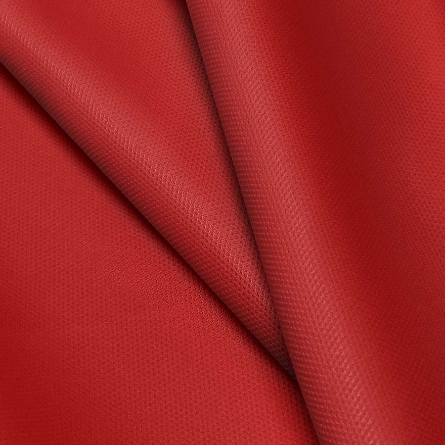 La tela base es Piqué para Polo - Durban de 100% poliéster con un gramaje de 180 gr/m2 y un ancho de 150 cm. El color liso impreso es rojo cardenalicio con un CMYK de 25 100 100 26, lo que implica que tiene una fuerte presencia de magenta y amarillo en su composición. Este color se complementa bien con colores neutros como el gris, marrón y blanco, así como con tonos de verde y azul.