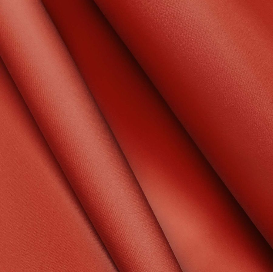 La tela base de este tejido es el Poliester Reciclado Deportivo - Basic, compuesta por un 93% de poliéster y un 7% de elastómero, con un gramaje de 145 gr/m2 y un ancho de 145 cm. Su color liso, impreso mediante sublimación, es de un rojo intenso con tintas en Cyan 23, Magenta 97, Yellow 100 y Black 19, lo que se traduce en un CMYK de 23 97 100 19. Este color liso es un rojo ladrillo refractario, que se caracteriza por ser un color vibrante y lleno de fuerza. Además, este color tiene cierta profundidad que lo hace muy interesante, y combina perfectamente con tonos beige, marrones, negros, blancos y grises. Es importante destacar que la impresión es a una sola cara y que la tela no está tintada sino impresa digitalmente.