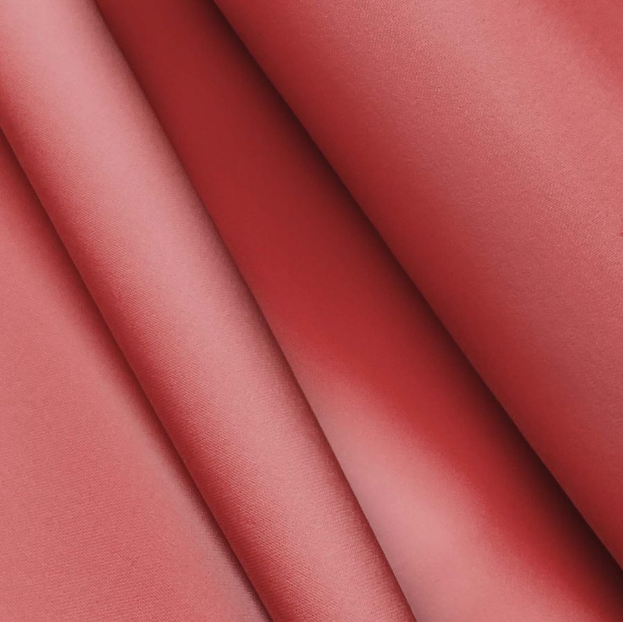La tela base es el Poliester Reciclado Deportivo - Basic, compuesta por un 93% de poliéster y un 7% de elastómero, con un gramaje de 145 gr/m2 y un ancho de 145 cm. El color liso impreso tiene una tonalidad de Rojo-Granate claro, representado por un CMYK de 18 80 63 6. Este color secundario presenta una apariencia elegante y sofisticada, que se encuentra en la línea entre el rojo y el granate. En términos técnicos, la mezcla de tinta utilizada consiste en un bajo porcentaje de tinta cyan (18%), alta tinta magenta (80%), tinta yellow (63%), y tinta negra (6%). Esta combinación de colores secundarios puede tener un gran impacto visual y combina perfectamente con tonos neutros y marrones.
