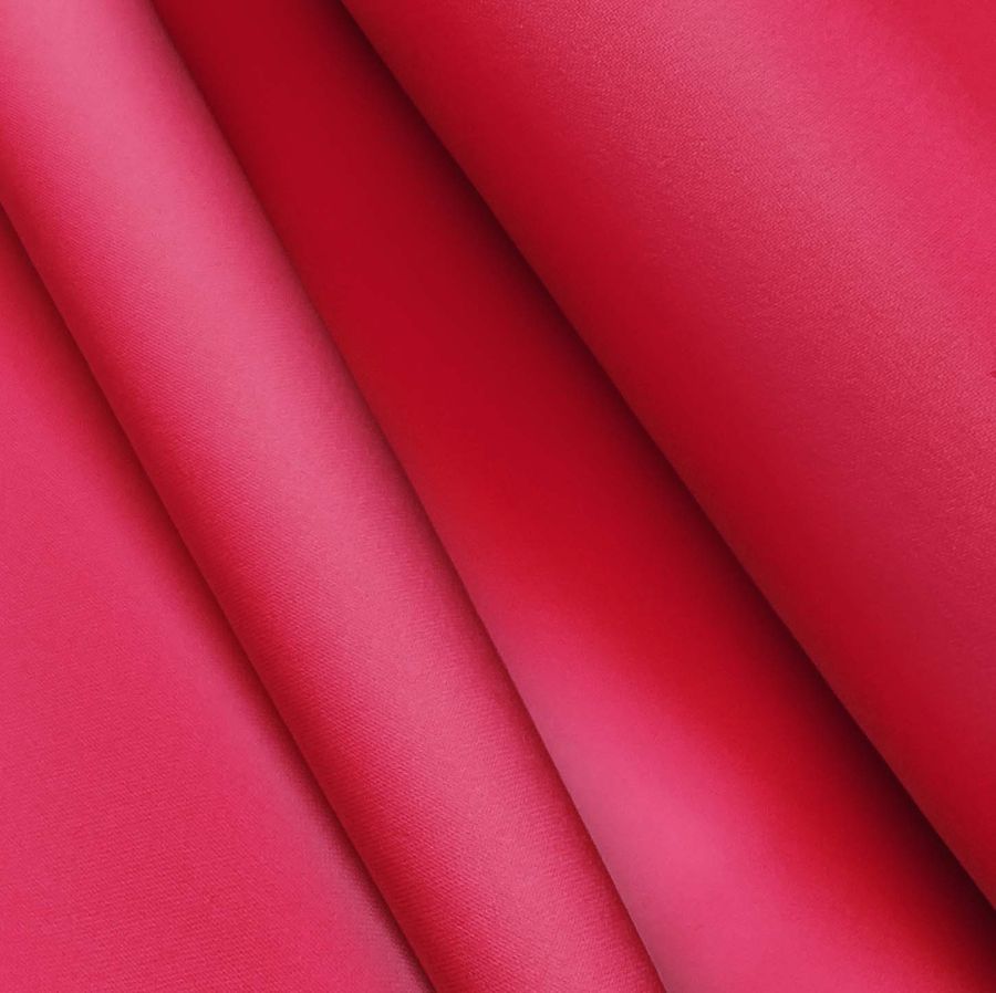 La tela base es el Poliester Reciclado Deportivo - Basic, con una composición del 93% de poliéster y 7% elastómero, un gramaje de 145 gr/m2 y un ancho de 145 cm. El color liso impreso es una mezcla de rosa y encarnado, con un CMYK de 5 98 69 1. Este color secundario, que destaca por su intensidad y calidez, combina especialmente bien con tonos neutros y oscuros, como el negro y el gris oscuro, y con colores complementarios como el verde y el azul.