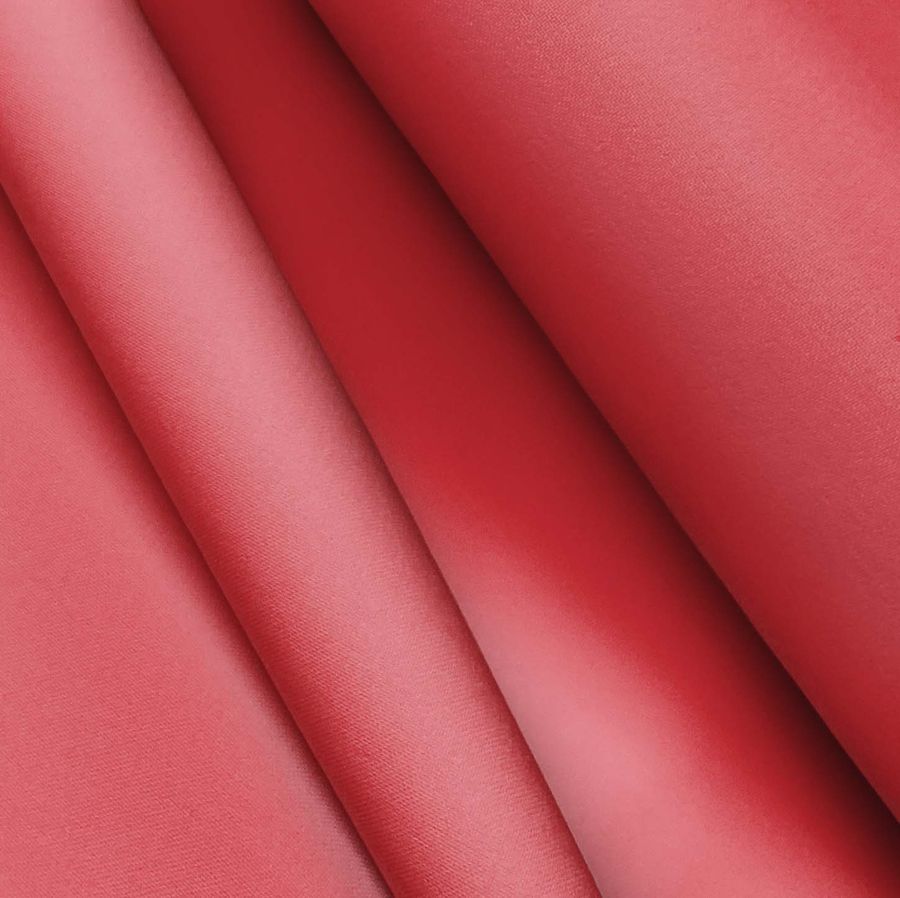 La tela base es el Poliéster Reciclado Deportivo - Basic en color blanco natural, con una composición 93% POLIÉSTER y 7% ELASTÓMERO. Su gramaje es de 145 gr/m2 y cuenta con un ancho de 145 cm. El color liso impreso es Rosa, Laca de Granza, el cual se logra con una combinación de tinta Cyan 11, Magenta 85, Yellow 64 y Black 2 (CMYK: 11 85 64 2). Este color rosa se asemeja a un tono más cobrizo, transmitiendo una sensación de tono pálido. Es un color elegante y sofisticado, que combina muy bien con tonalidades grises o blancas.