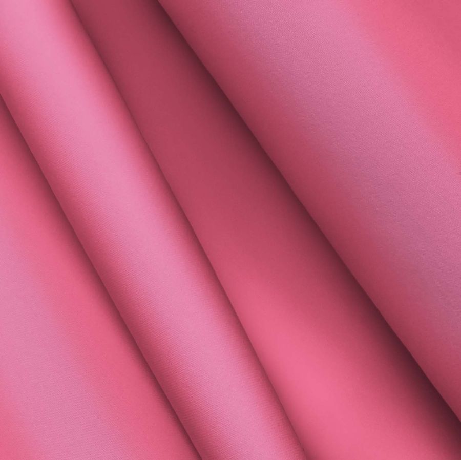 La tela base es un poliéster reciclado deportivo de tipo básico con composición de 93% poliéster y 7% elastómero, de 145 gr/m2 y ancho de 145 cm. El color liso impreso es rosa brink, el cual se logra con una tinta magenta de 75, una tinta yellow de 29 y una tinta black de 0, con un CMYK de 0 75 29 0. Este color secundario evoca sentimientos de dulzura, inocencia, romanticismo y suavidad, lo que lo hace ideal para prendas deportivas y de baño femeninas. Además, combina bien con tonos oscuros como el negro y el azul marino, así como con tonos más claros como el blanco y el gris.