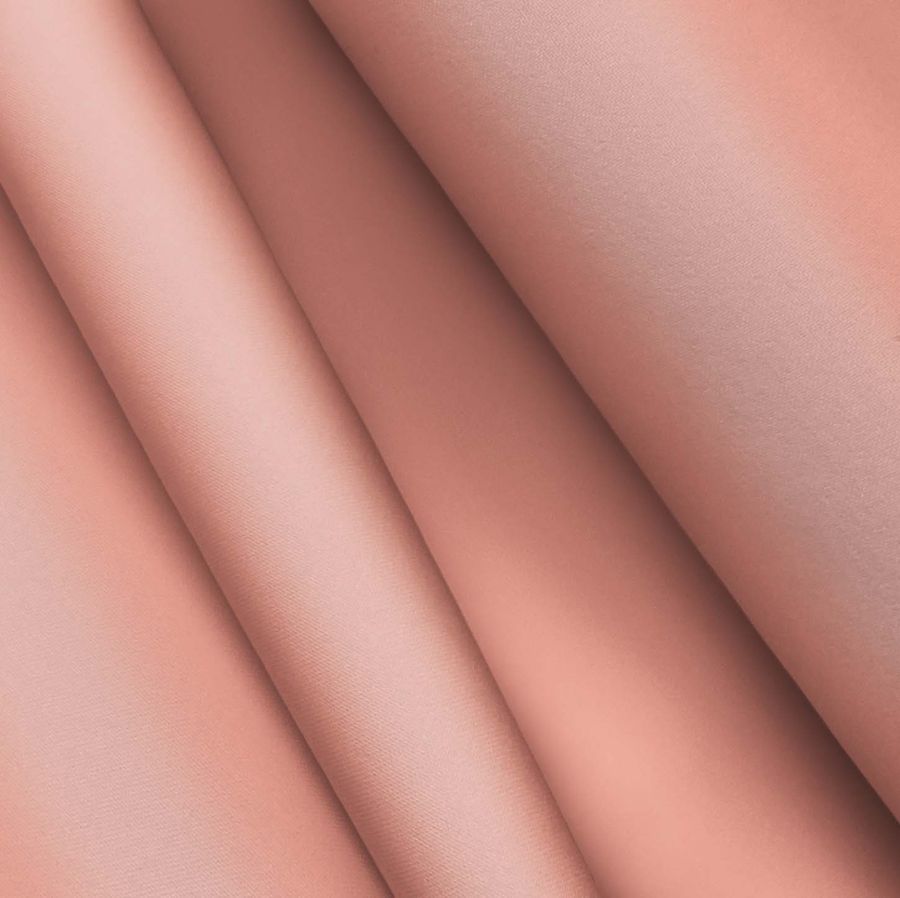 El color medio entre el rosa y el melocotón es un color suave y cálido, evocando una sensación de dulzura y delicadeza. El color puede ser combinado con tonos verdes suaves, beige, crema, tonos blancos, así como granates y marrones para aportar un contraste equilibrado. La tela está impresa con el color liso a una sola cara por impresión digital textil, resultando en un tejido vibrante y nítido.