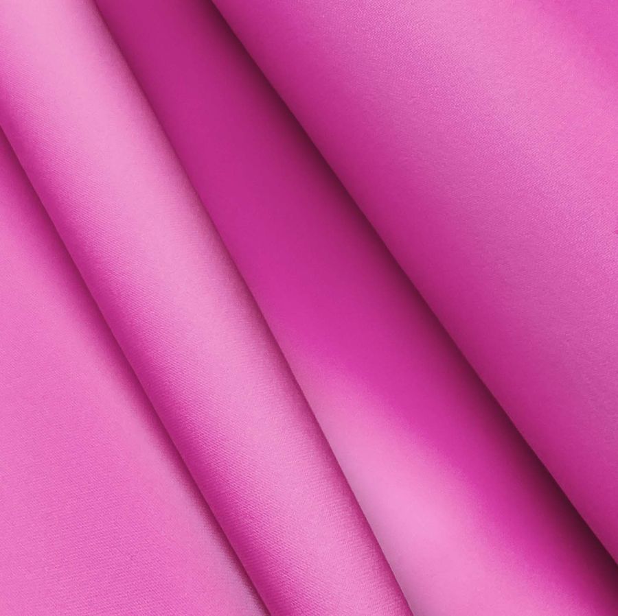La tela base de este tejido es el Poliester Reciclado Deportivo Basic, con una composición de 93% poliéster y 7% elastómero, un gramaje de 145 gr/m2 y un ancho de 145 cm. Este tejido tiene un color liso impreso en rosa plástico, con un CMYK de 2 76 0 0, lo que le da un tono vibrante y atractivo. El color secundario se caracteriza por ser intenso y brillante, con tonos cálidos que lo hacen ideal para tejidos deportivos y de baño. El rosa plástico combina muy bien con otros colores brillantes y pasteles, especialmente en tejidos de mujer y niño.