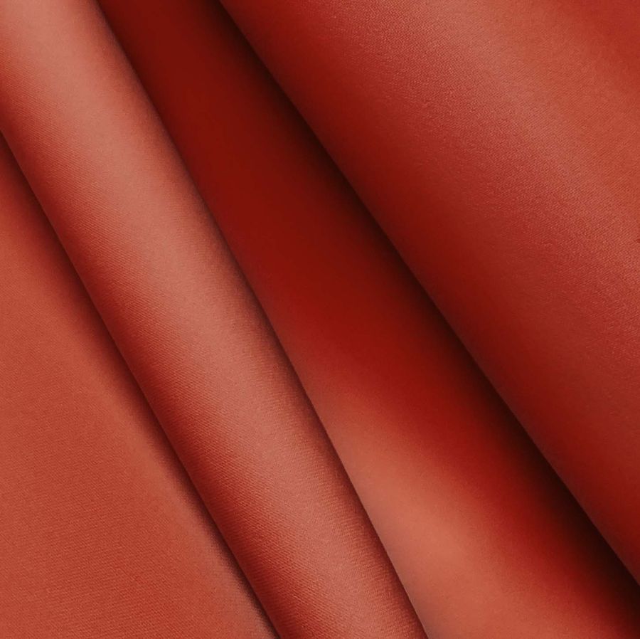 El Poliéster Reciclado Deportivo - Basic es un tejido compuesto por un 93% de poliéster y un 7% de elastómero. Con un gramaje de 145 gr/m2 y una anchura de 145 cm, se caracteriza por ser suave al tacto y liso en textura. El color liso impreso en esta tela es un marrón almagra con un CMYK de 24 94 100 21. Este color secundario transmite una sensación de serenidad y estabilidad, como la tierra y el aire. Combina muy bien con otros colores tierra, verdes, negros y blancos.