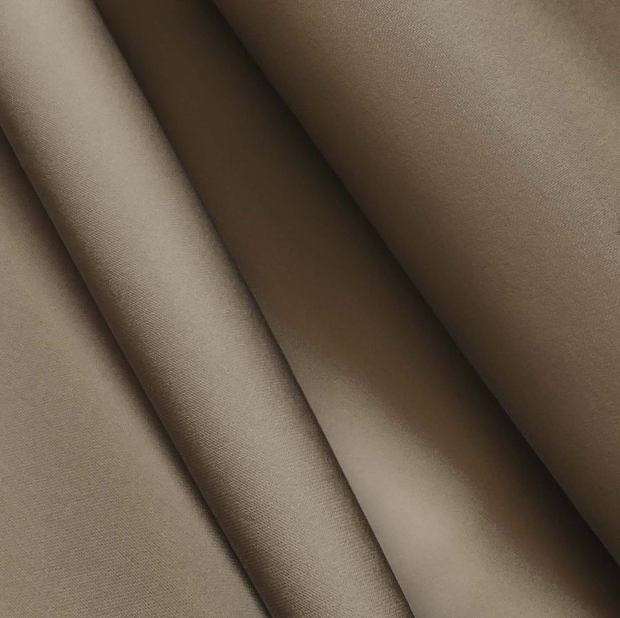 La tela base es poliéster reciclado deportivo de tipo básico con una composición del 93% de poliéster y un 7% de elastómero, con un gramaje de 145 gr/m2 y un ancho de 145 cm. El color liso impreso en la tela es marrón corteza con un CMYK de 47-48-63-43. Este color, simboliza la naturalidad y la tranquilidad de la tierra, pero también representa un toque de sofisticación. El marrón corteza combina especialmente con colores arena, crema y tonalidades marrones, creando combinaciones naturales y elegantes. Es importante destacar que la tela está impresa con el color liso a una sola cara por impresión digital textil.