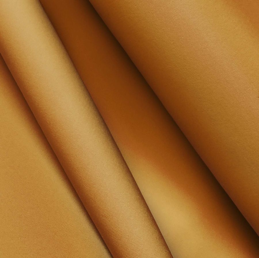 La tela base es el Poliester Reciclado Deportivo - Basic de 145 gr/m2 y un ancho de 145 cm, compuesta por 93% poliéster y 7% elastómero. El color liso impreso es Marron Curry con un CMYK de 25 59 98 18. Este color es simbólicamente cálido, atractivo y llamativo, y técnicamente se caracteriza por ser una intensa mezcla de naranjas y marrones oscuros. Armoniza a la perfección con tonos tierra, beiges o blancos, y puede combinarse con azules o rojos para lograr un diseño más vibrante. Es necesario mencionar que la tela está impresa con el color liso a una sola cara por impresión digital textil.