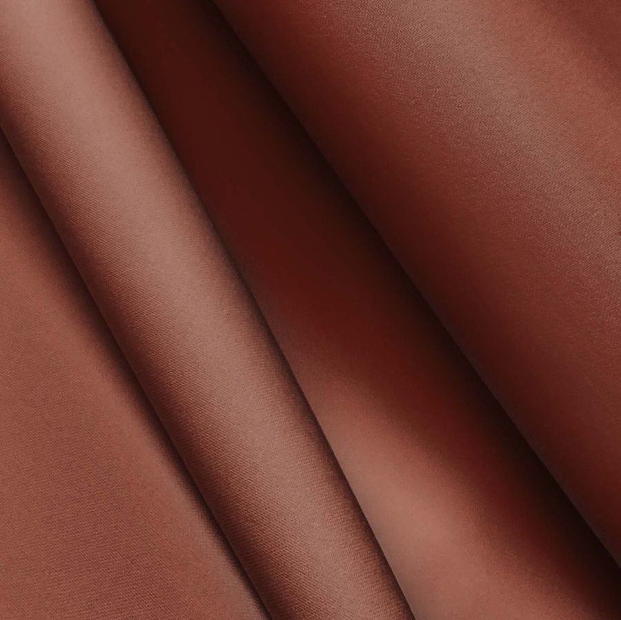 La tela base de este producto es el Poliester Reciclado Deportivo - Basic, compuesta por un 93% de poliéster y un 7% de elastómero, con un gramaje de 145 gr/m2 y una anchura de 145 cm. La tela es suave al tacto y de textura lisa. El color impreso es marrón hígado, con un CMYK de 35 82 82 51. Este color secundario se caracteriza por ser cálido, profundo y con un toque de misterio. Combinado con otros colores, como el blanco o el negro, crea un efecto elegante y sofisticado, mientras que en combinación con tonalidades más vivas, como el azul o el rojo, aporta contraste y personalidad. Es importante mencionar que esta tela está impresa con el color liso a una sola cara por impresión digital textil, por lo que no es un tejido tintado sino impreso por una sola cara.