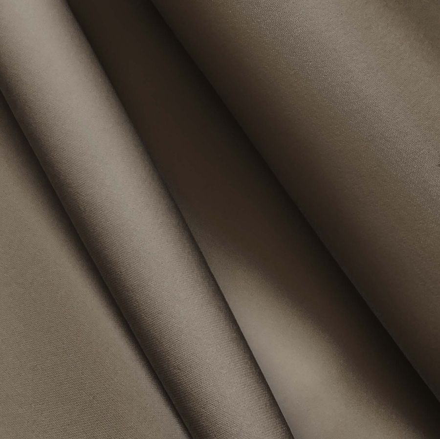 La tela base se trata de Poliester Reciclado Deportivo - Basic, compuesta por un 93% de poliéster y un 7% de elastómero, con un gramaje de 145 gr/m2 y un ancho de 145 cm. Su color liso, impreso mediante la tecnología de sublimación, es Marrón Nutria, con un CMYK de 53 53 64 55. Este color secundario representa la elegancia y la sobriedad, simbolizando la estabilidad y la tranquilidad. Se combina perfectamente con colores claros, como el beige y el blanco, y con tonos más oscuros, como el gris y el marrón. Cabe destacar que la impresión digital textil se realiza en una sola cara, no siendo un tejido tintado sino impreso.