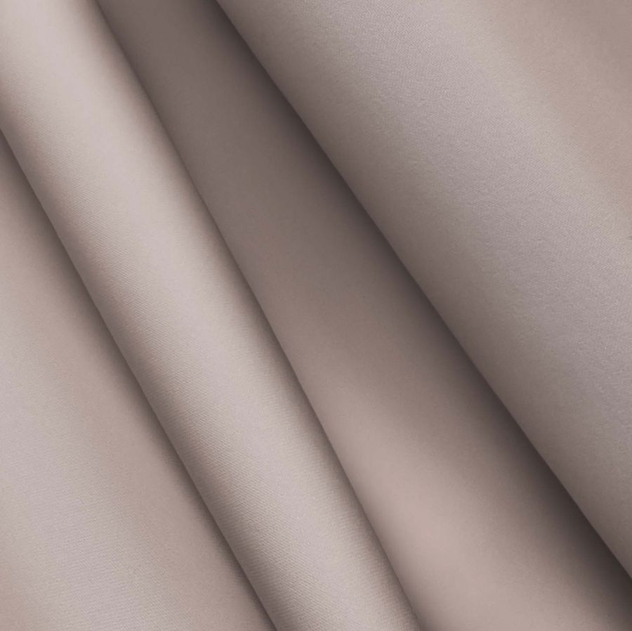 La tela base es el Poliester Reciclado Deportivo - Basic, compuesta por 93% de poliéster y 7% de elastómero, de gramaje 145 gr/m2 y ancho de 145 cm. Su color es marrón y plata pálida, con un CMYK de 31 36 36 13. El color secundario es un tono neutro que sugiere elegancia y sofisticación, y se combina especialmente bien con tonos oscuros como negro, azul marino o gris. La tela está impresa con el color liso a una sola cara por impresión digital textil.