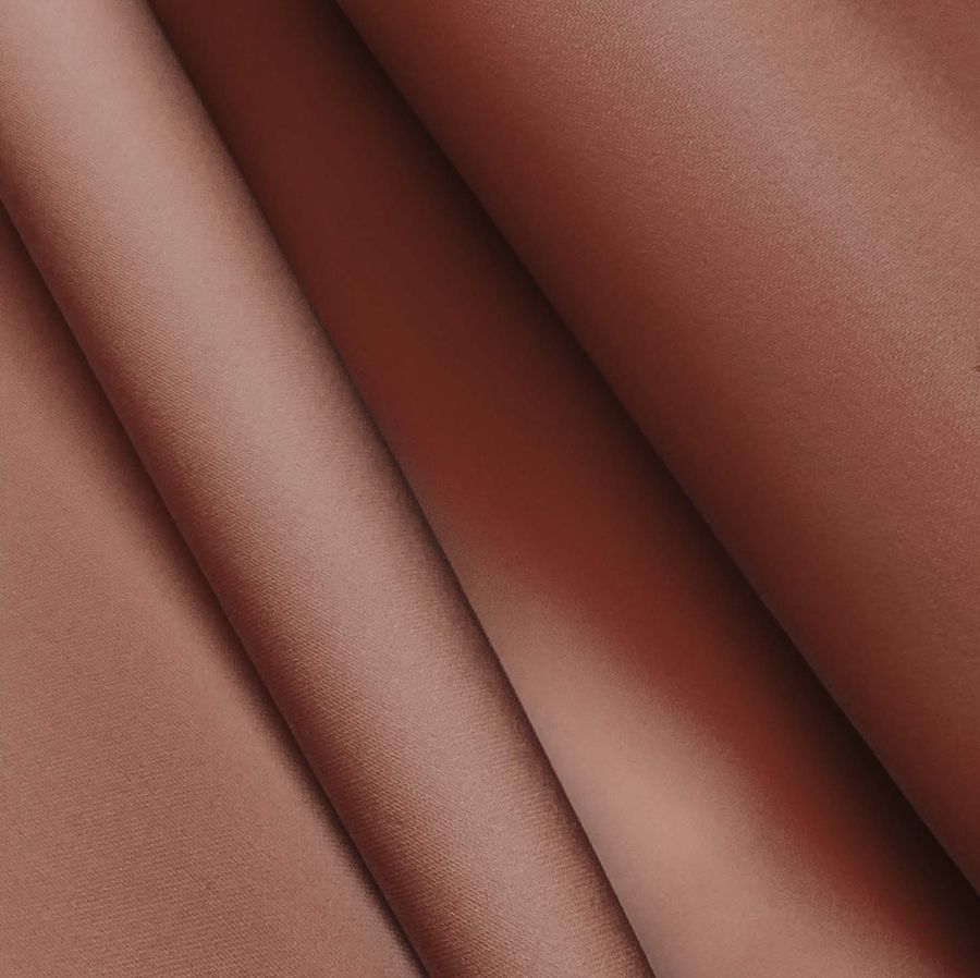 La tela base es Poliester Reciclado Deportivo - Basic, compuesta por 93% POLIÉSTER y 7% ELASTÓMERO, con un gramaje de 145 gr/m2 y un ancho de 145 cm. Su color liso impreso es Marrón Secuoya, con un CMYK de 33 68 68 40, lo que se traduce en un tono marrón verdoso con una cierta intensidad.