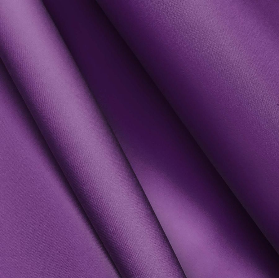 La tela base es el Poliester Reciclado Deportivo - Basic de 145 gr/m2 y ancho de 145 cm, compuesta por un 93% de poliéster y un 7% de elastómero, con certificación GRS y tecnología de impresión por sublimación. El color liso impreso es Morado Cambur, cuyo código CMYK es 77 100 24 16. Este color presenta una tonalidad cercana al morado oscuro, con una pizca de marrón y un toque de amarillo, otorgando una sensación de profundidad y elegancia a la tela. Combina perfectamente con otros tonos morados y lilas, así como con tonos amarillos y verdes, generando combinaciones frescas y sofisticadas. Es importante mencionar que el tejido está impreso con este color en una sola cara por impresión digital textil, lo que proporciona una alta definición y detalle al diseño.