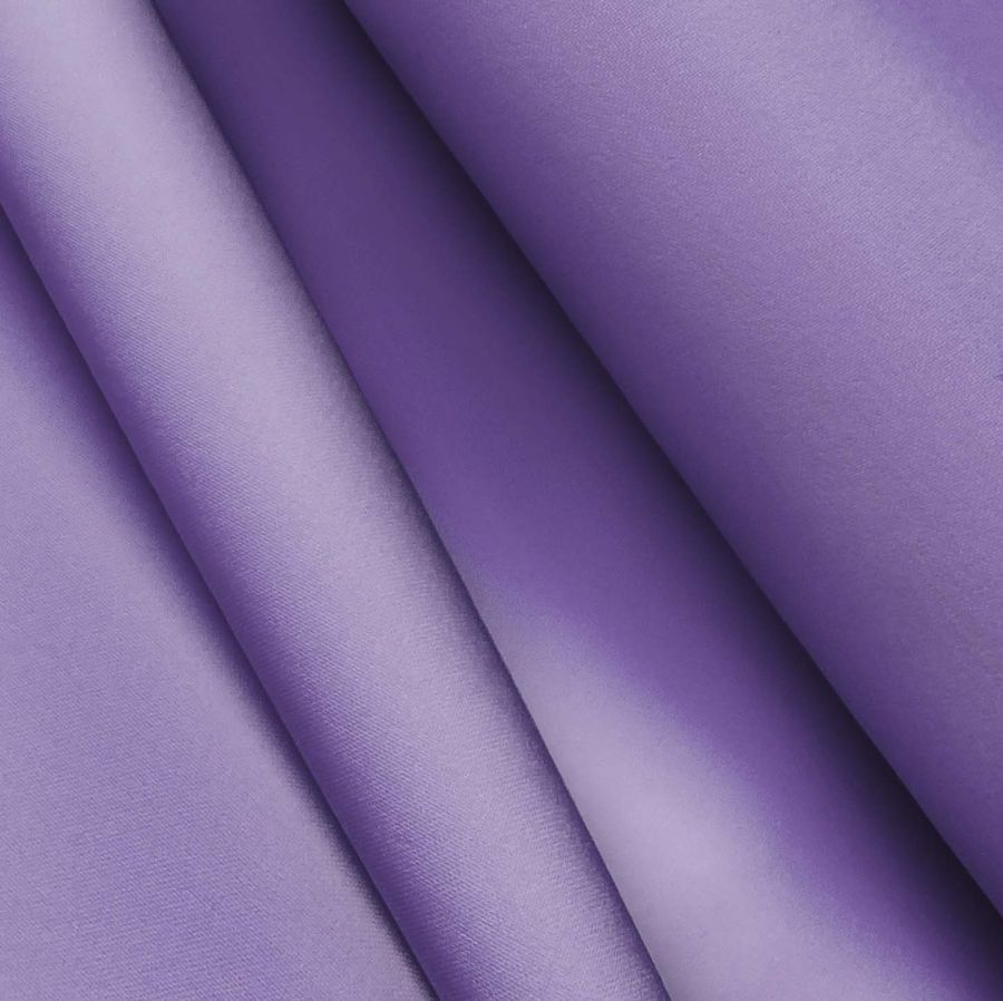 La tela base es el Poliéster Reciclado Deportivo - Basic, compuesta por 93% poliéster y 7% elastómero, con un gramaje de 145 gr/m2 y una anchura de 145 cm. El color liso impreso en esta tela es un tono Morado Lirio, con una combinación de tinta CMYK de 59 en cyan, 63 en magenta, 7 en yellow y 0 en black. Este color secundario evoca ternura y suavidad, pero también energía y vitalidad al mismo tiempo. Se combina especialmente bien con tonos grises, blancos o rosados, lo que lo convierte en una opción versátil para cualquier estilo de prenda.